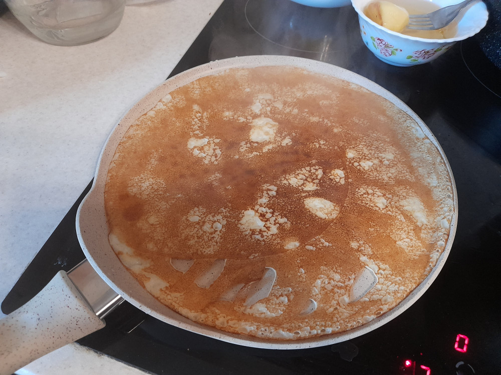 Сковородень понравилась, блины жарятся легко, относительно быстро. Ручка не перевешивает саму сковородку (доводилось видеть и такое). Диаметр 24см в самый раз. Цвет приятный. Надеюсь прослужит долго, в частности антипригарное покрытие.