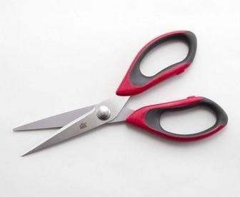 Кухонные ножницы с удобными ручками. Лезвия длительное время не нуждаются в дополнительной заточке. |