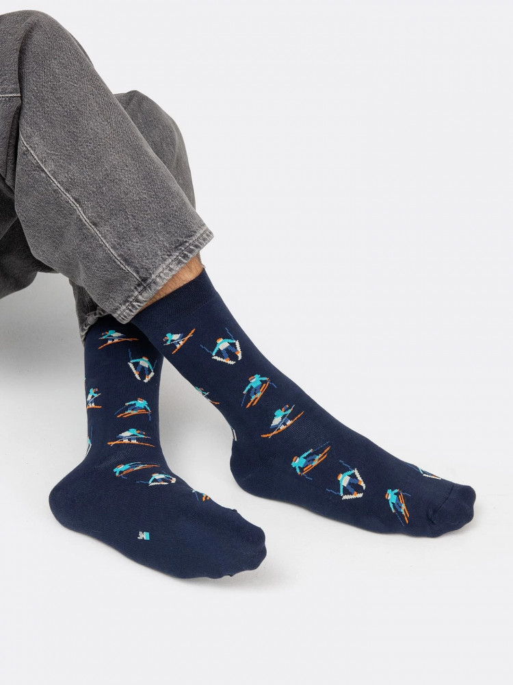 Это мужские носки, соотвественно сидят выше середины голени по высоте, не носки, а скорее недогольфы.