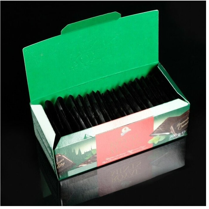 Очень вкусный шоколад. Тонкие пластины шоколада, с ментоловой помадкой внутри.
