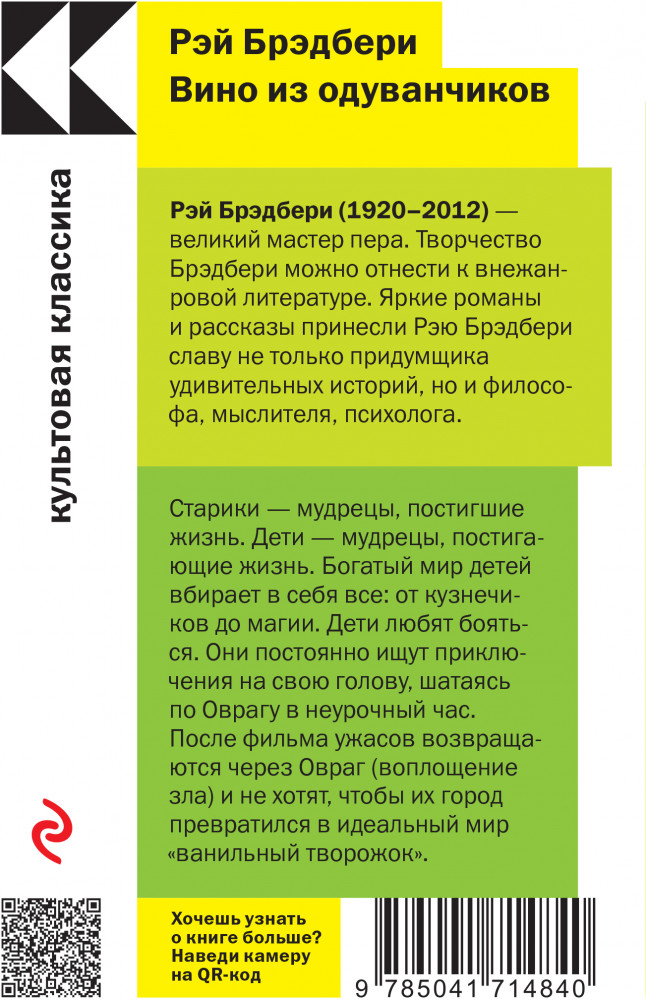 Вино из одуванчиковВ данный момент этот товар отсутствует в продаже. Возможно, у нас найдется аналогичный или похожий товар здесь. Серия: Культовая классика. Читаем главное Здесь навсегда останется ваше сердце. |