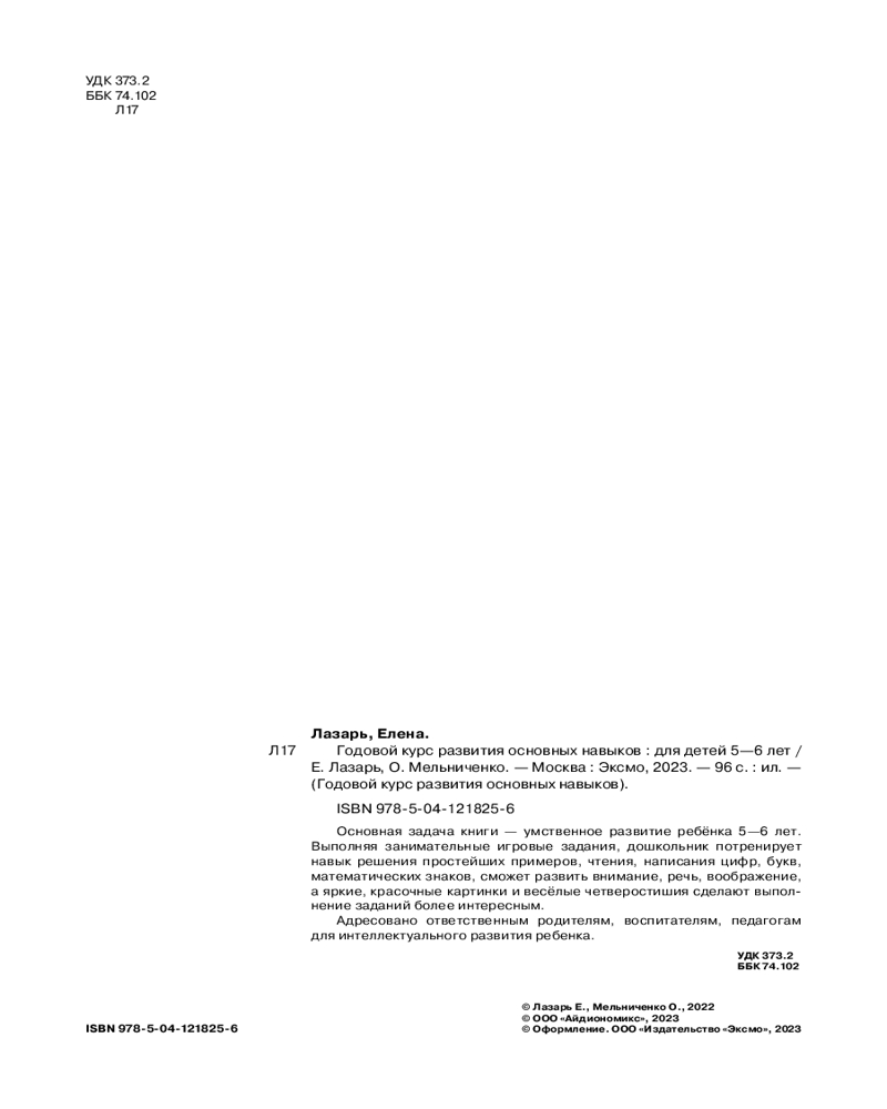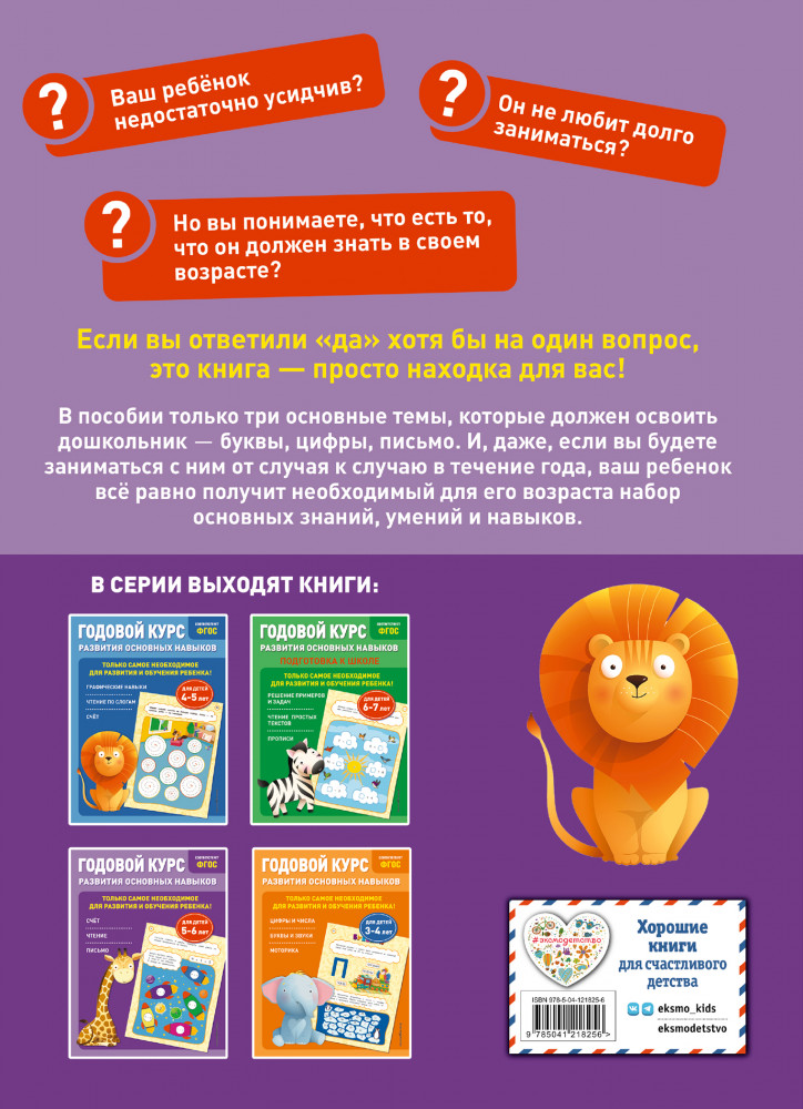 💳 Оплатить за товар можно при получении 🇰🇿 Есть бесплатная доставка по Казахстану от 1 дня 🎁 Копите бонусы с каждой покупки Серия: Годовой курс развития основных навыков Пособие разработано для повышения интеллектуального уровня дошкольника и рассчитано на год. Занимаясь, ребенок будет считать и решать простые примеры на сложение и вычитание с опорой на картинки и числовую прямую, потренирует навыки чтения, написания цифр, математических знаков и печатных букв, расширит словарный запас и кругозор, разовьет внимание, память, речь, воображение. И тогда в дальнейшем ребенок не будет испытывать проблем с речью, письмом, счетом, восприятием и запоминанием информации. |
