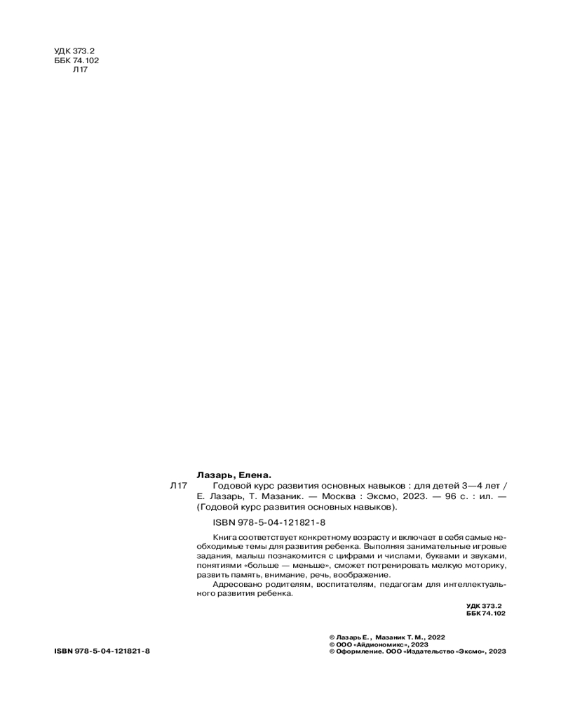 Годовой курс развития основных навыков: для детей 3-4 лет+15