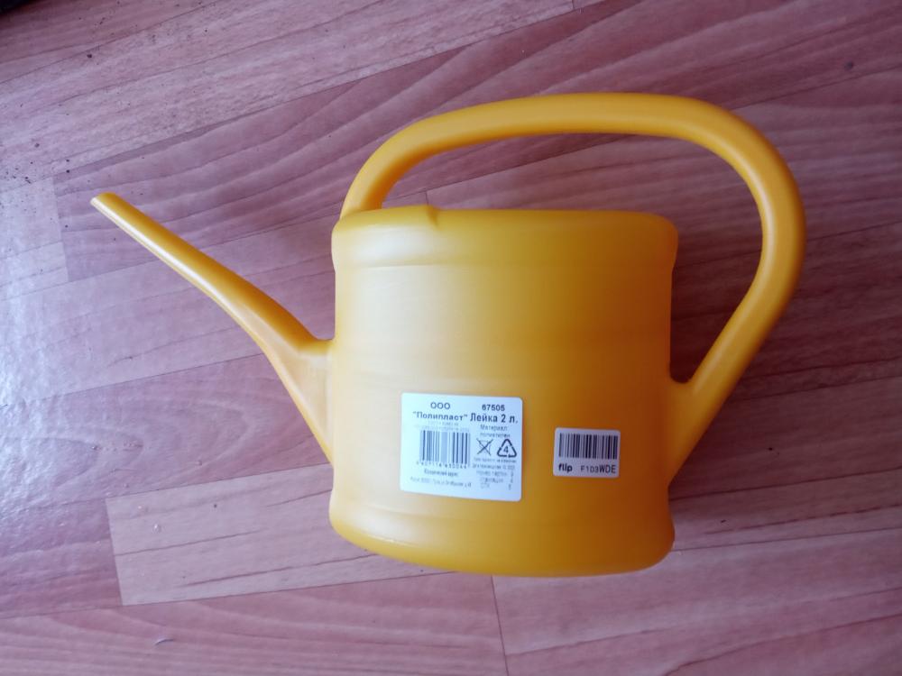лейка из плотного пластика, удобна в использовании, давно хотела купить, поливаю цветы с радостью. Спасибо Flip!