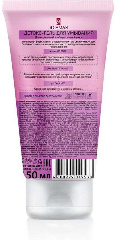 💳 Оплатить за товар можно при получении 🇰🇿 Есть бесплатная доставка по Казахстану от 1 дня 🎁 Копите бонусы с каждой покупки Детокс-гель для умывания для нормальной и комбинированной кожи. Уникальная формула геля с содержанием сыворотки для бережного очищения и защиты кожи от пересушивания во время использования. AHA-кислота мягко отшелушивает ороговевшие клетки кожи, нормализует процесс обновления эпидермиса и способствует избавлению от следов постакне и раздражений. Экстракт граната мощный антиоксидант, который прекрасно увлажняет кожу, насыщает ее витаминами и усиливает защитные свойства. |
