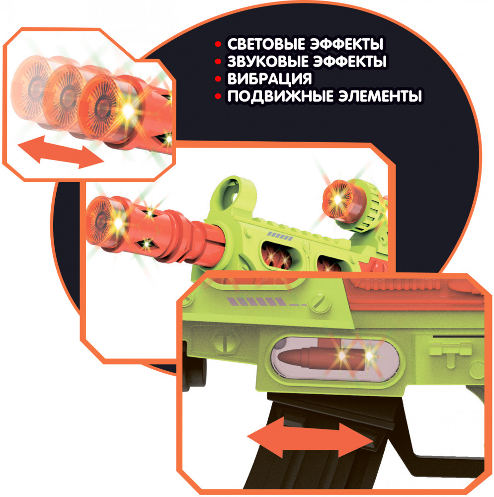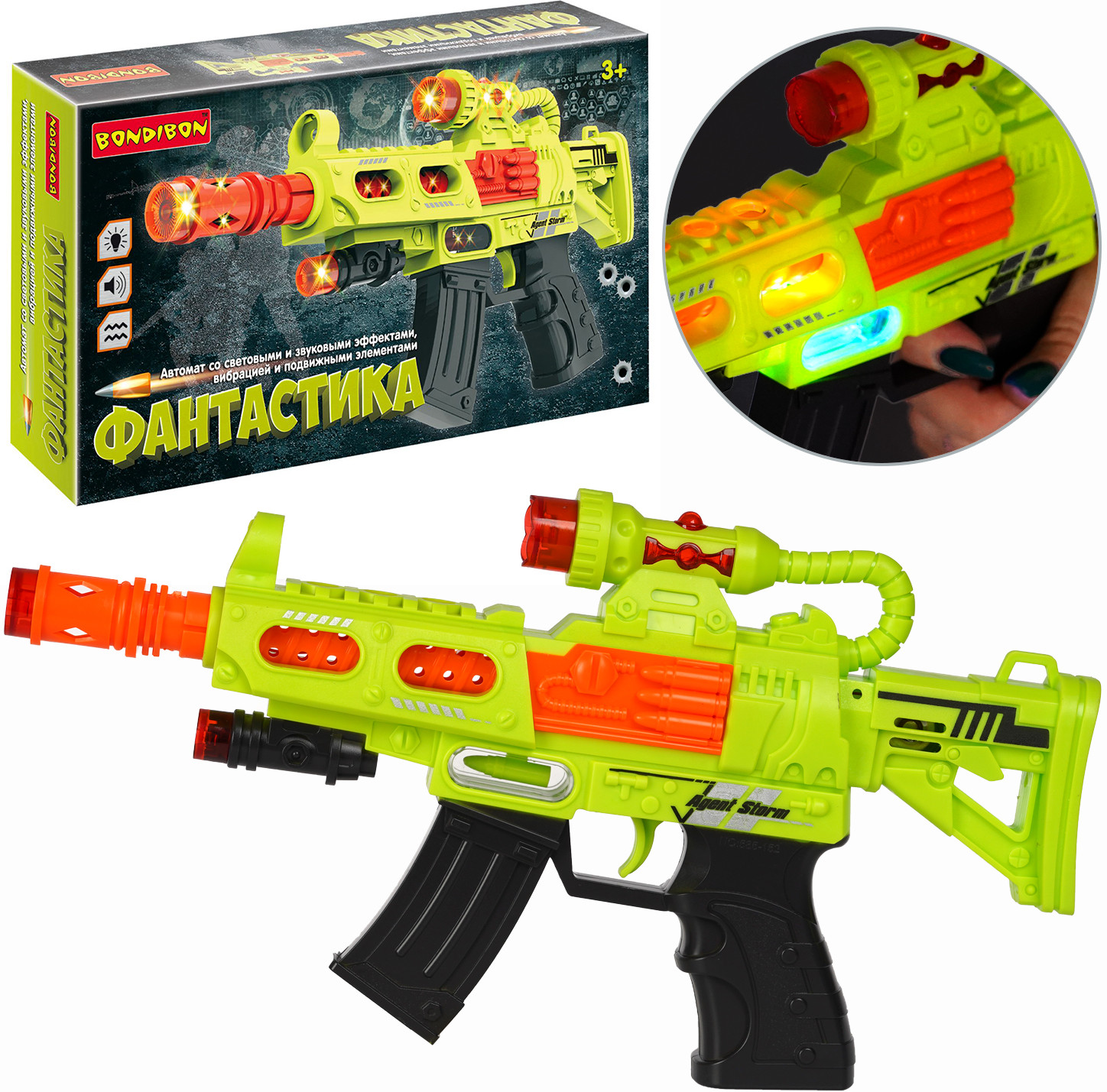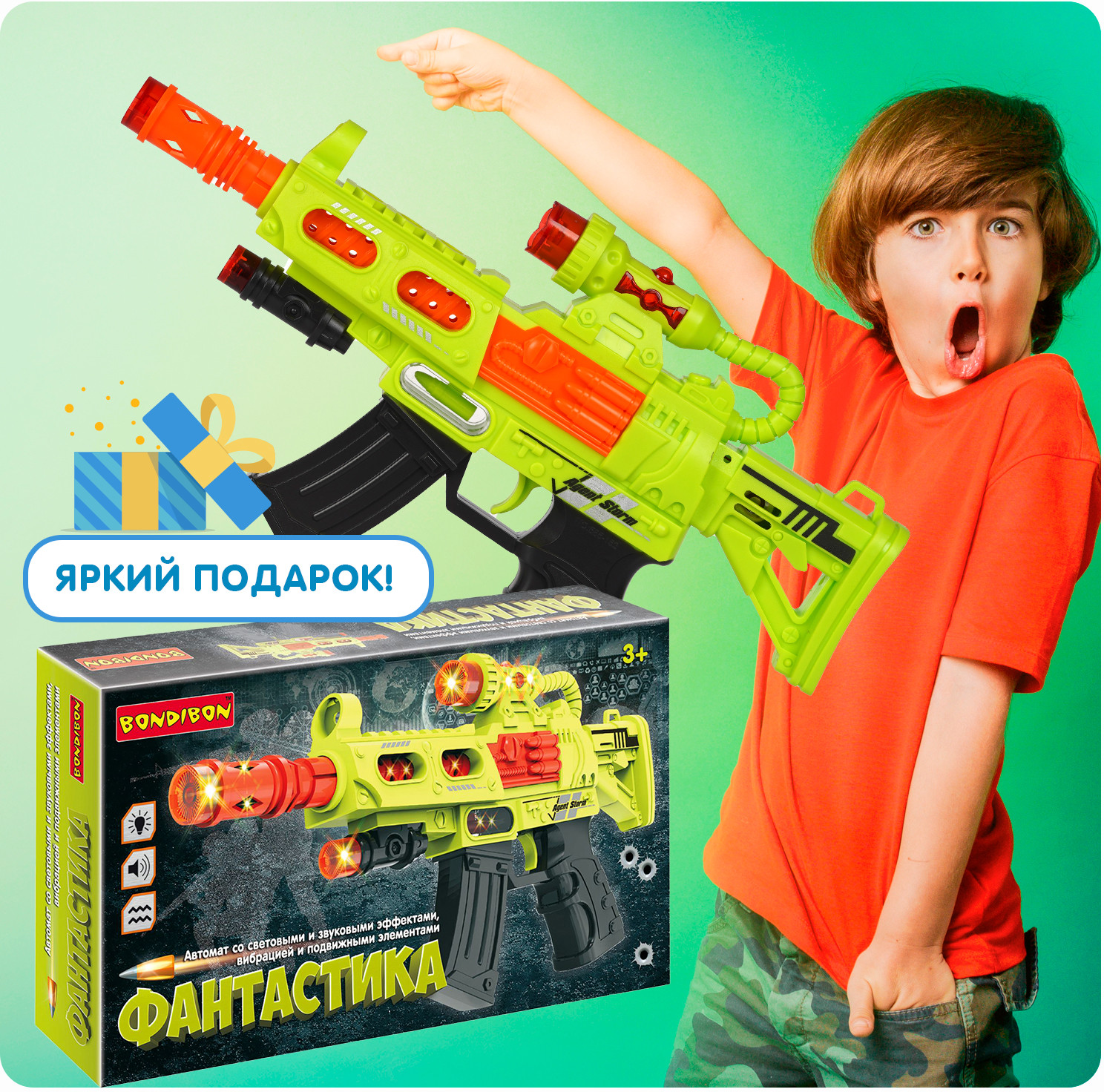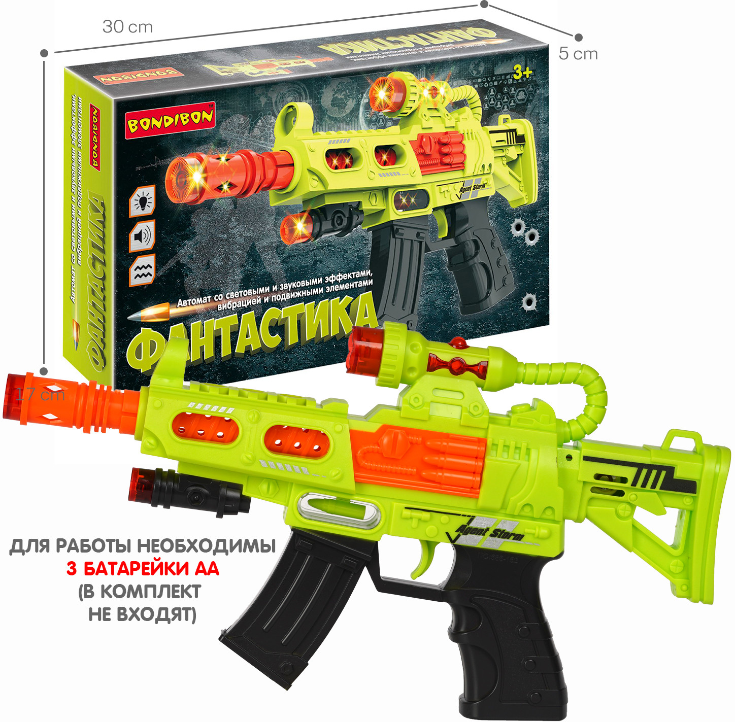 Bondibon Автомат детскийВ данный момент этот товар отсутствует в продаже. Возможно, у нас найдется аналогичный или похожий товар здесь. Серия: Фантастика Это просто фантастика! Детский черно-зеленый автомат с подвижными элементами, коллиматорным прицелом и фонариком. Игрушечное супер-оружие автомат от Bondibon светится, стреляет с межгалактическими звуками и спецэффектами. Во время стрельбы в пистолете движется дуло, ощущается вибрация, подсвечивается фиксированный патрон пуля. |