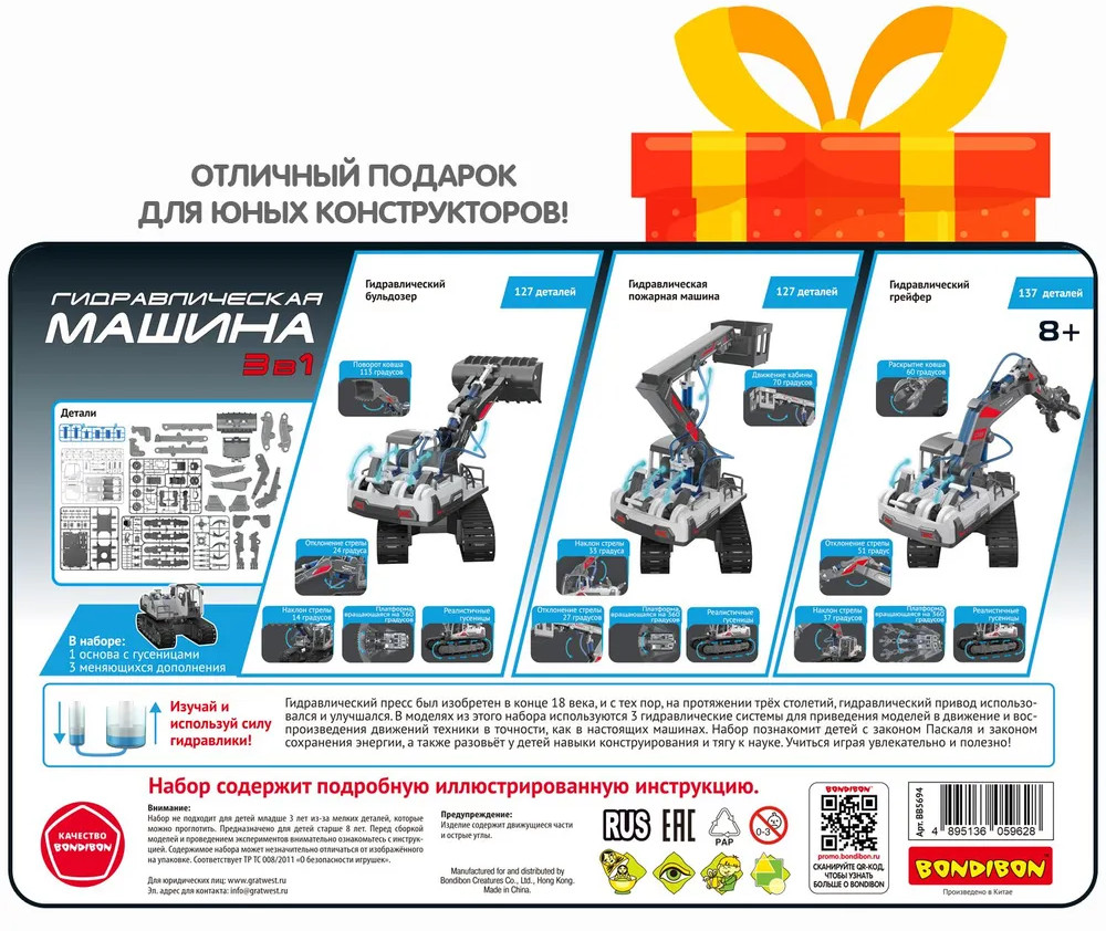 💳 Оплатить за товар можно при получении 🇰🇿 Есть бесплатная доставка по Казахстану от 1 дня 🎁 Копите бонусы с каждой покупки Серия: Науки с Буки. Технический прогресс Изучай и используй силу гидравлики! Впечатляющий конструктор «Гидравлическая машина» от Bondibon поможет освоить базовую робототехнику. Вам не понадобятся батарейки и мотор. Нужен только научный подход и технический прогресс. Детский набор познакомит мальчиков и девочек с законом Паскаля и законом сохранения энергии. Благодаря вдумчивой сборке ребёнок тренирует навыки конструирования, логическое мышление. Разнообразные модели техники расширяют кругозор. |