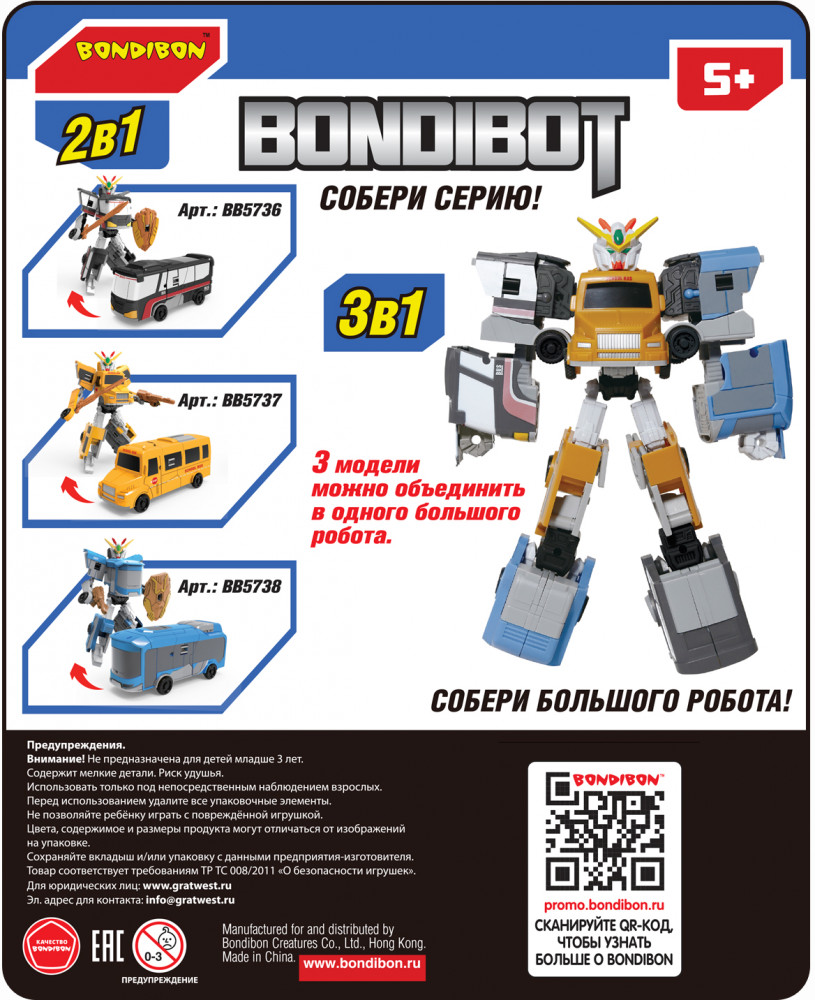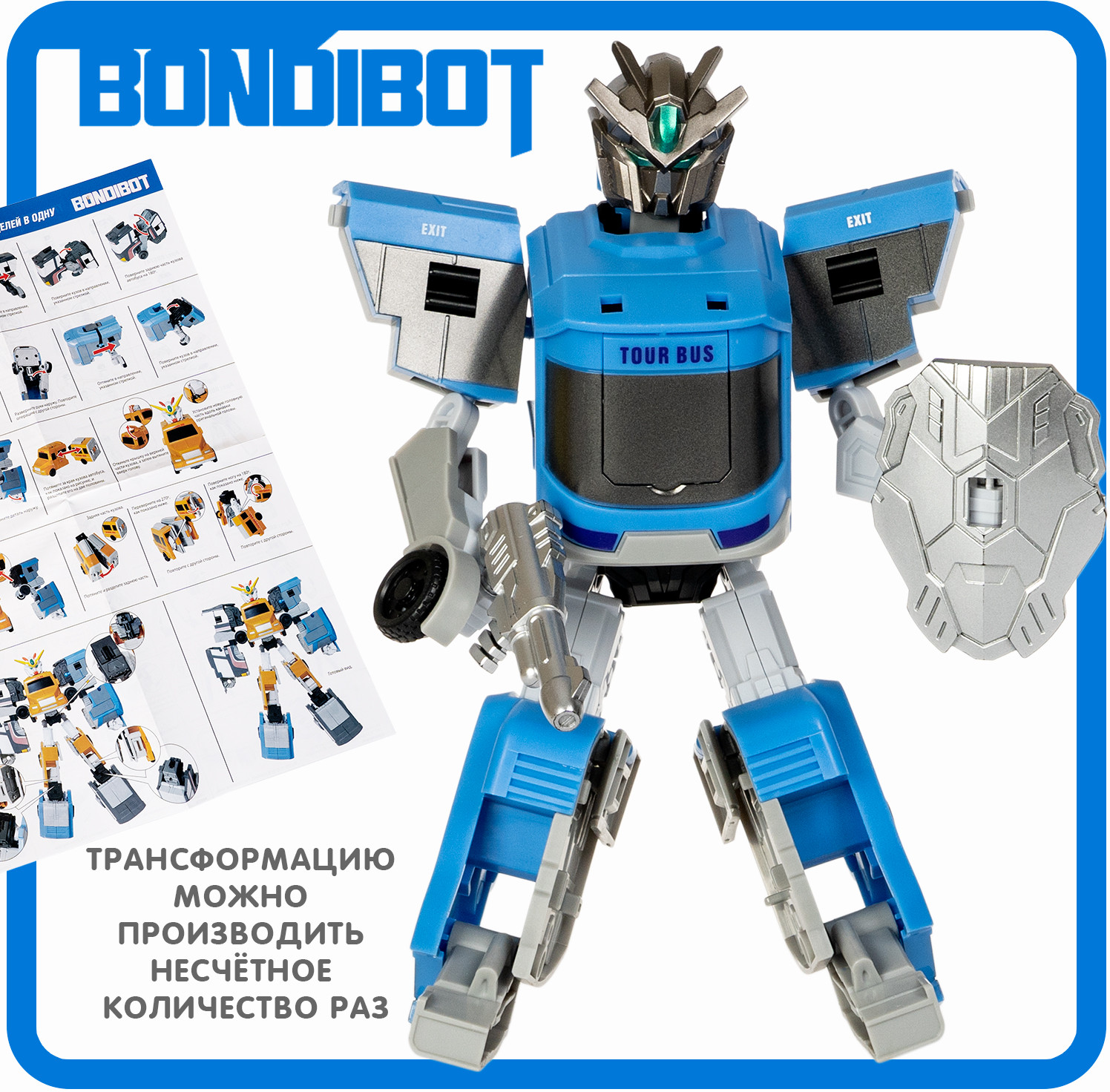 Трансформируйте грозного робота в футуристический автобус. Это волшебное перевоплощение превратит развивающую игру в сказку. Батарейки вам не потребуются. Все трансформации машинки механические. Качественные детали и безопасный пластик. Отличный подарок для мальчиков от 5 лет на любой праздник. Соберите фигурки из серии Bondibon и превратите их в уникального большого робота!