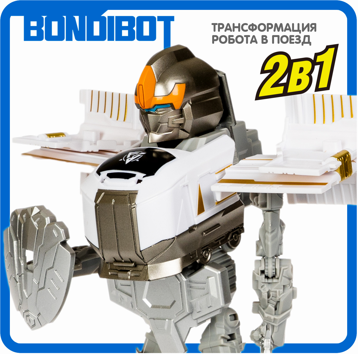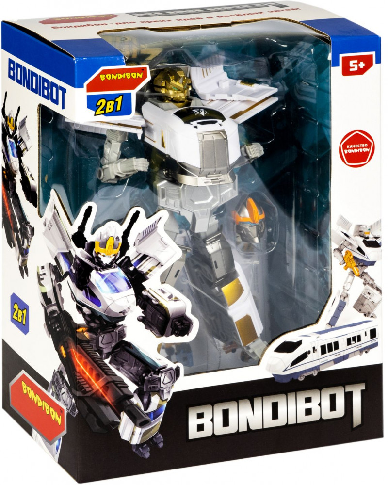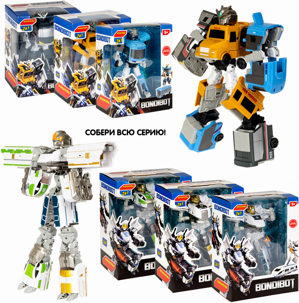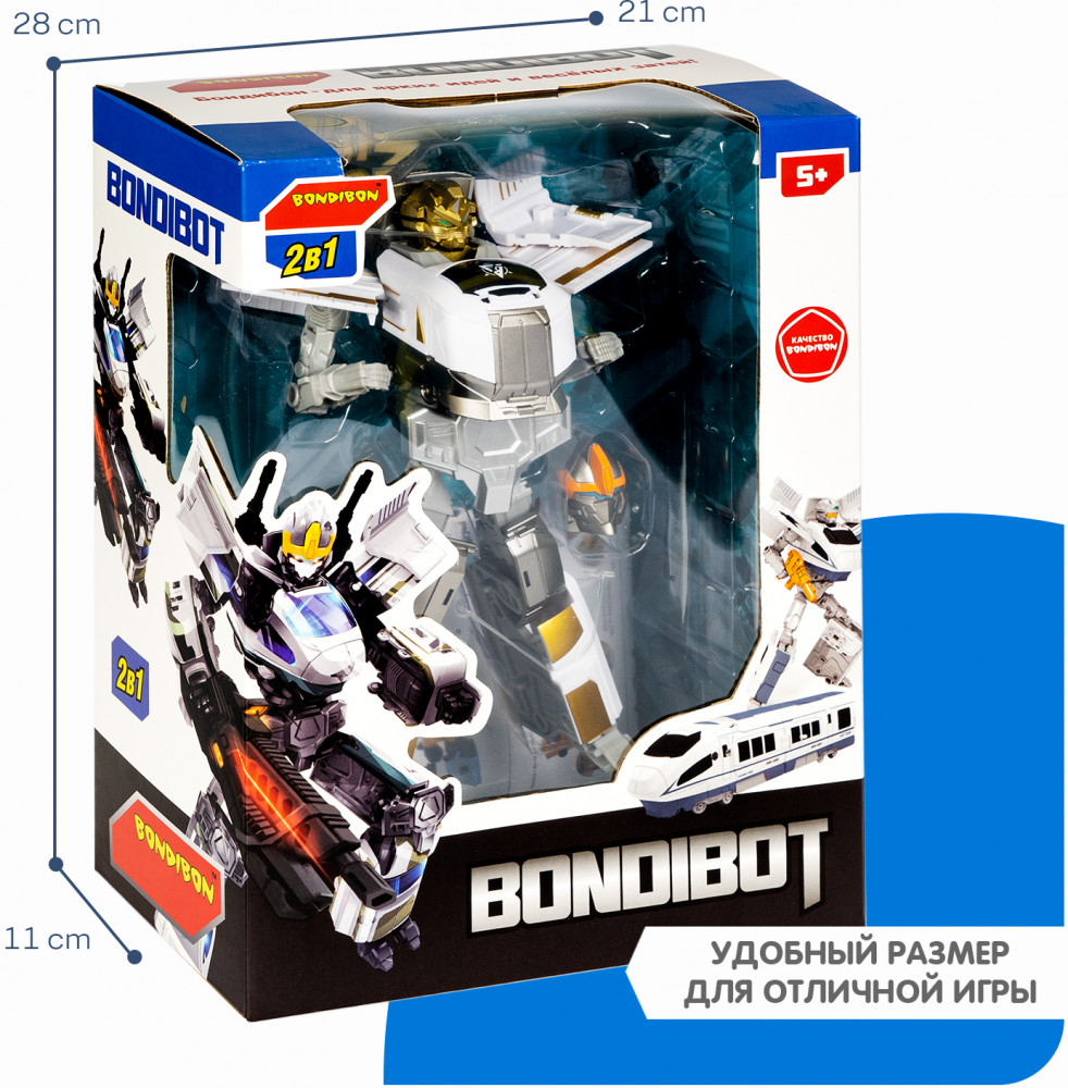 Трансформируйте грозного робота в футуристический поезд. Это волшебное перевоплощение превратит развивающую игру в сказку. Батарейки вам не потребуются. Все трансформации машинки механические. Качественные детали и безопасный пластик. Отличный подарок для мальчиков от 5 лет на любой праздник. Соберите фигурки из серии Bondibon и превратите их в уникального большого робота!