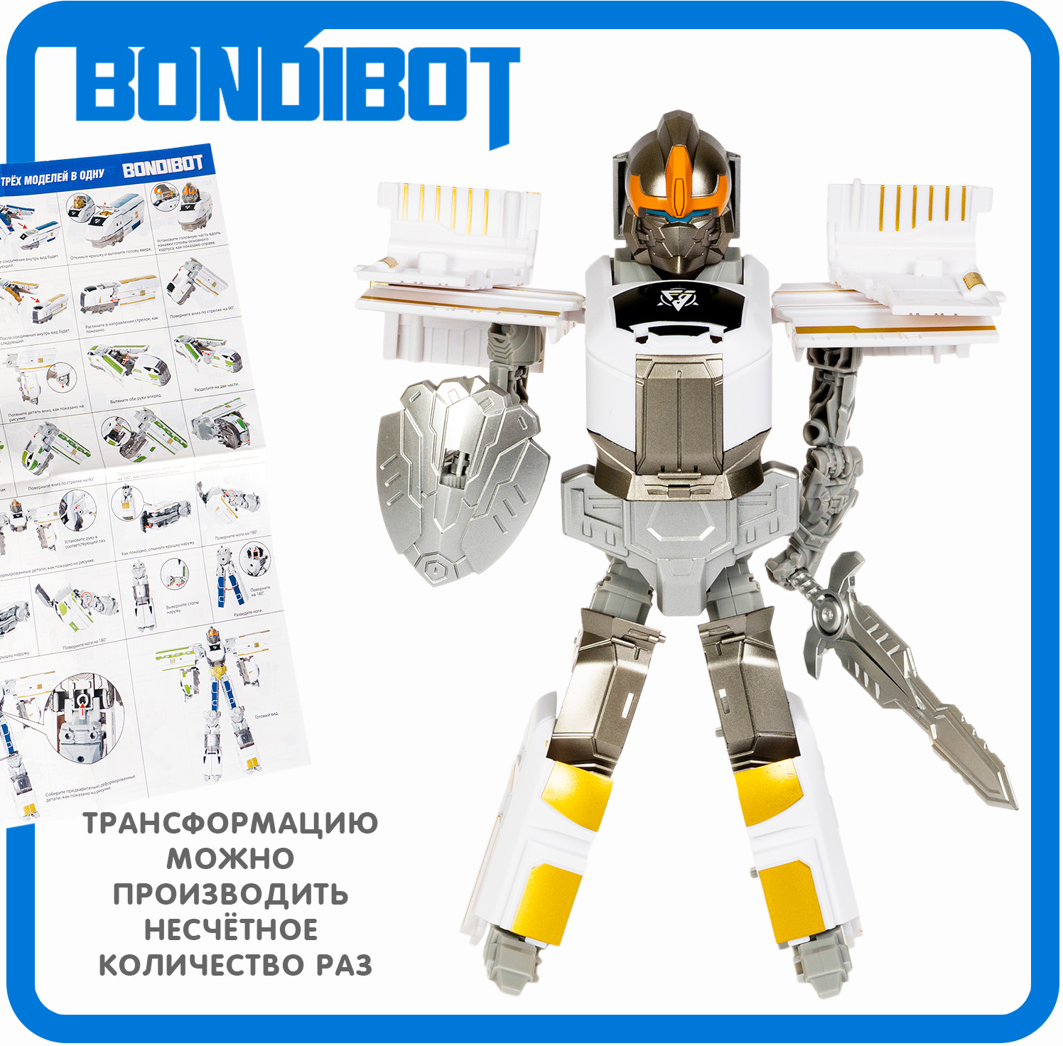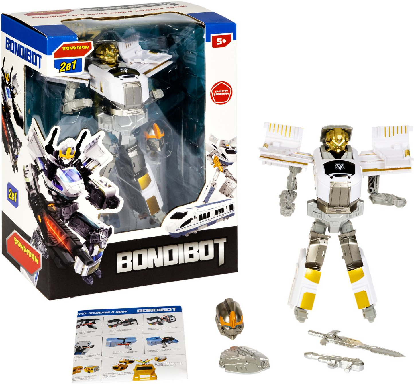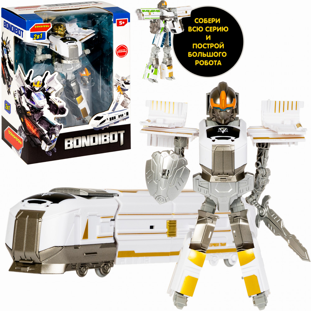 Трансформируйте грозного робота в футуристический поезд. Это волшебное перевоплощение превратит развивающую игру в сказку. Батарейки вам не потребуются. Все трансформации машинки механические. Качественные детали и безопасный пластик. Отличный подарок для мальчиков от 5 лет на любой праздник. Соберите фигурки из серии Bondibon и превратите их в уникального большого робота!