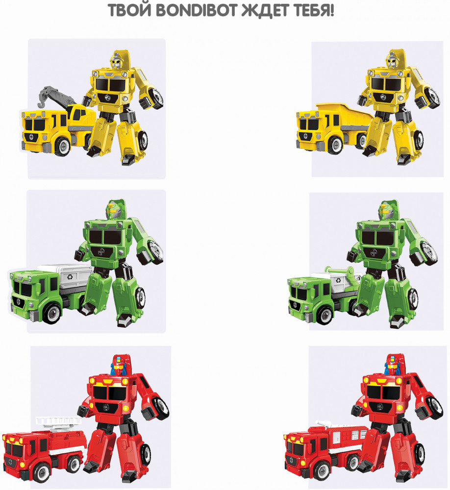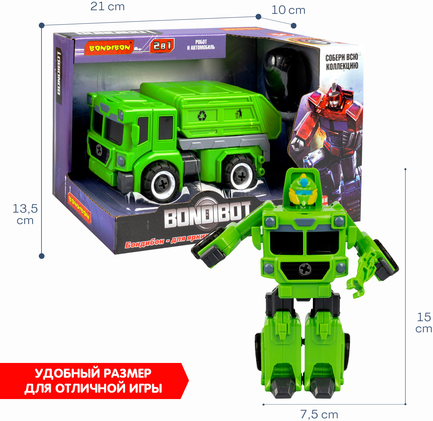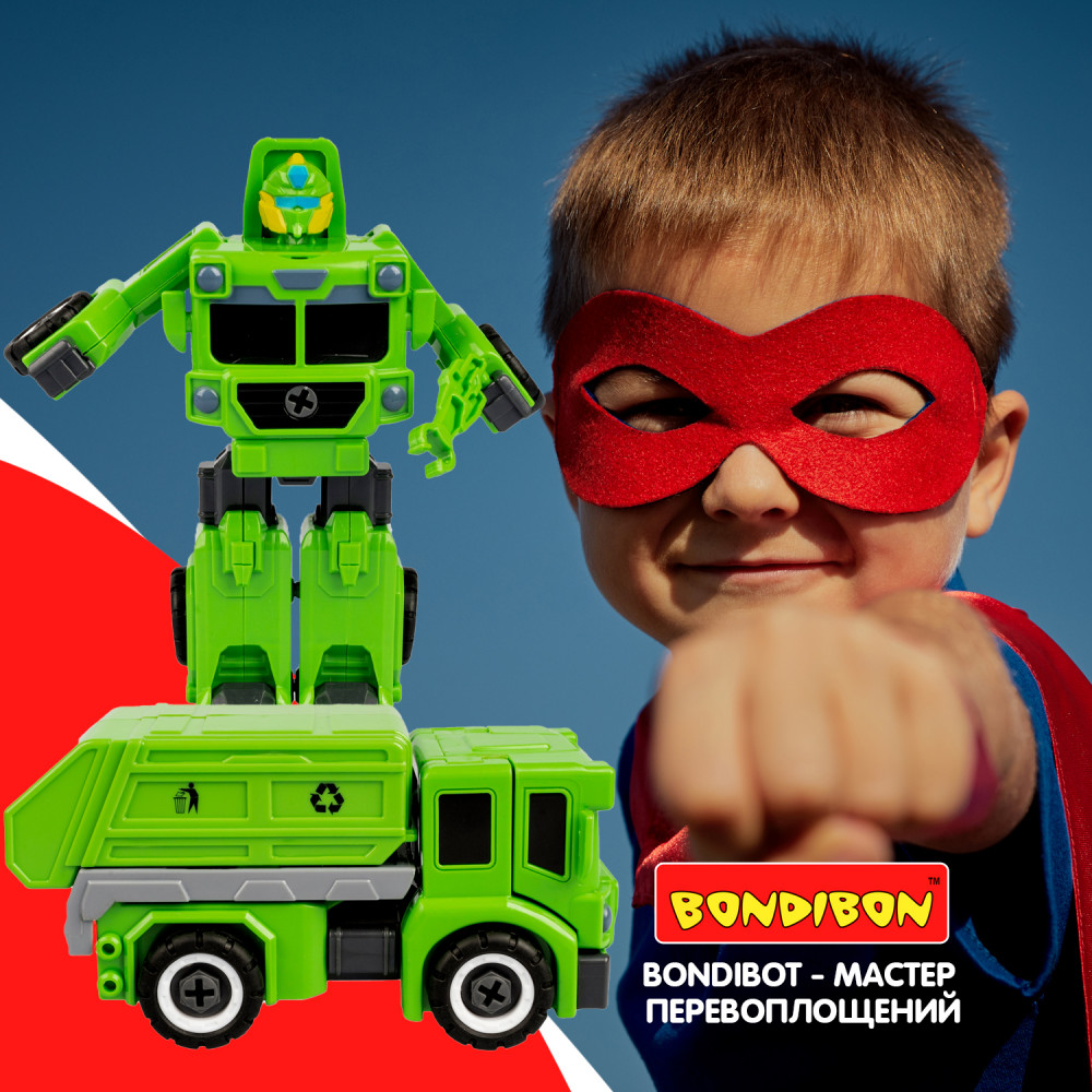 Трансформируйте грозного робота в футуристический поезд. Это волшебное перевоплощение превратит развивающую игру в сказку. Батарейки вам не потребуются. Все трансформации машинки механические. Качественные детали и безопасный пластик. Отличный подарок для мальчиков от 5 лет на любой праздник. Соберите фигурки из серии Bondibon и превратите их в уникального большого робота!