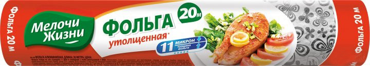 Фольга алюминиевая «Мелочи Жизни» достаточно плотная и в то же время эластичная – удобна для запекания, хранения и транспортировки продуктов. Эксклюзивное тиснение по всей длине фольги хорошо выделяет продукцию среди конкурентов, а прозрачное окошко позволяет демонстрировать его на полке.