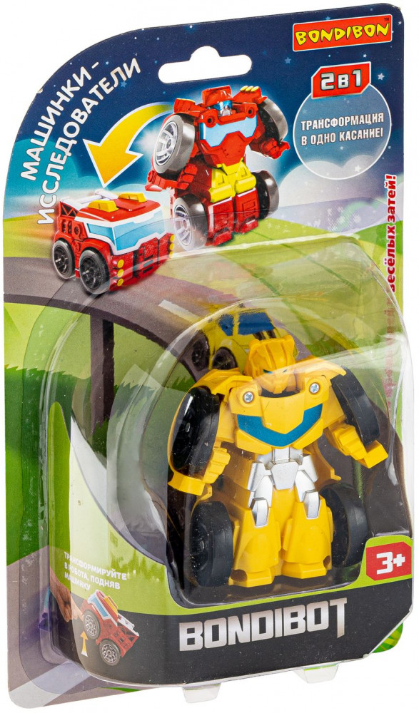 Размер игрушки в виде робота составляет 7,5 × 7,8 × 4,8 см, в виде машинки — 6,4 × 4,8 × 4,8 см. Красочная упаковка с описанием механизма трансформации на листе с европодвесом.