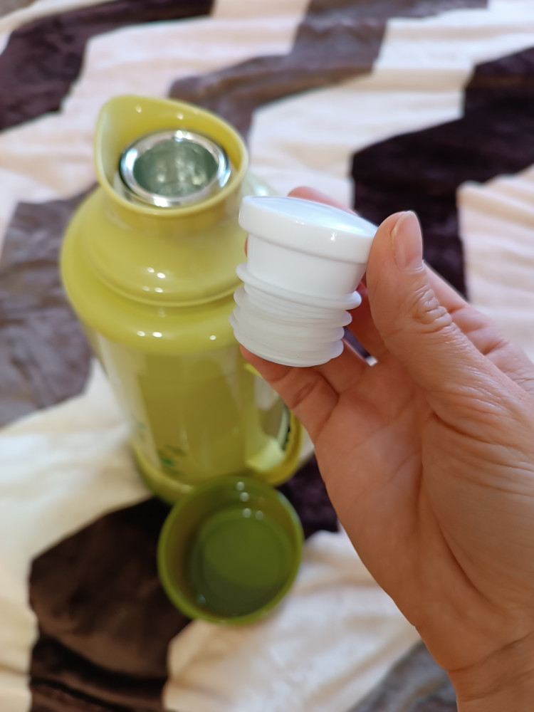 Пришел брак, хорошо, что вовремя проверила, до оплаты. Колба дребезжала слегка, когда берешь термос в руки. Невооружённым глазом виден зазор вокруг колбы с прокладкой и самим пластиковым термосом, поэтому дребезжал. Кипяток будет заливаться в зазор и прокисать там внутри, а потом в чашку будет эта холодная вода попадать. В общем отказ. Очень жалко, ведь заказывала по хорошей скидке, а сейчас на 1000 с лишним дороже идёт.