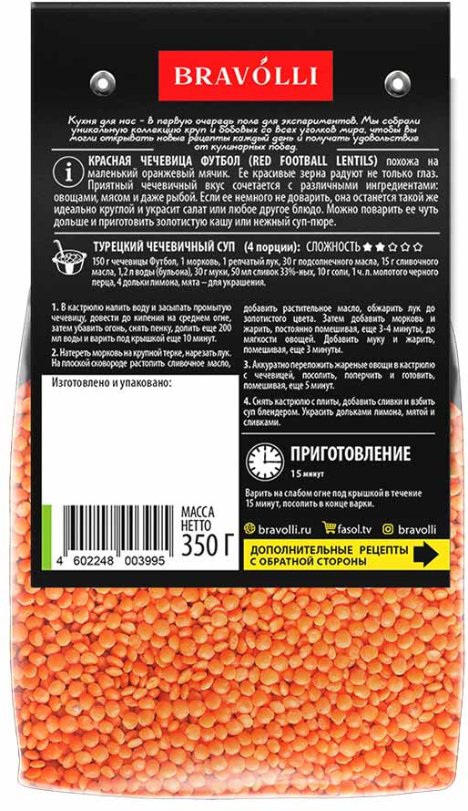 💳 Оплатить за товар можно при получении 🇰🇿 Есть бесплатная доставка по Казахстану от 1 дня 🎁 Копите бонусы с каждой покупки Красная чечевица футбол (red football lentils) похожа на маленький оранжевый мячик. Ее красивые зерна радуют не только глаз. Приятный чечевичный вкус сочетается с различными ингредиентами: овощами, мясом и даже рыбой. Если ее немного не доварить, она останется такой же идеально круглой и украсит салат или любое другое блюдо. Можно поварить ее чуть дольше и приготовить золотистую кашу или нежный суп-пюре. |