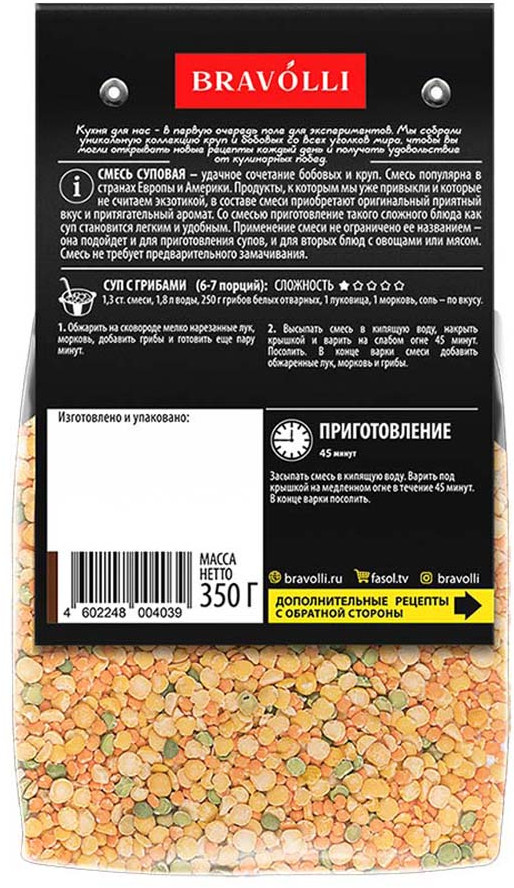 💳 Оплатить за товар можно при получении 🇰🇿 Есть бесплатная доставка по Казахстану от 1 дня 🎁 Копите бонусы с каждой покупки Смесь суповая — удачное сочетание бобовых и круп. Смесь популярна в странах Европы и Америки. Продукты, к которым мы уже привыкли и которые не считаем экзотикой, в составе смеси приобретают оригинальный приятный вкус и притягательный аромат. Со смесью приготовление такого сложного блюда как суп становится легким и удобным. Применение смеси не ограничено ее названием — она подойдет и для приготовления супов, и для вторых блюд с овощами или мясом. Смесь не требует предварительного замачивания. |