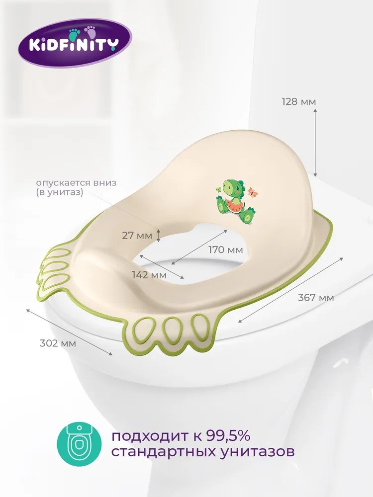 Kidfinity Накладка на унитаз детскаяВ данный момент этот товар отсутствует в продаже. Возможно, у нас найдется аналогичный или похожий товар здесь. Накладка на унитаз «Kidfinity» поможет малышу как можно быстрее приучиться к унитазу и ходить в туалет по-взрослому. По краю основания накладки и загнутых «лапок»-фиксаторов идёт кант из нескользящего материала. Вместе с эргономичной формой и округлыми краями они обеспечивают максимальное удобство и безопасность процесса для ребёнка. За ручку на спинке накладку удобно держать во время ополаскивания, а также она позволяет повесить накладку за край. Накладка изготовлена из безопасного прочного полипропилена и легко моется. |