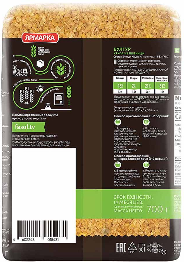 Чистый, золотистого цвета, очень вкусный булгур, с нотками ореха