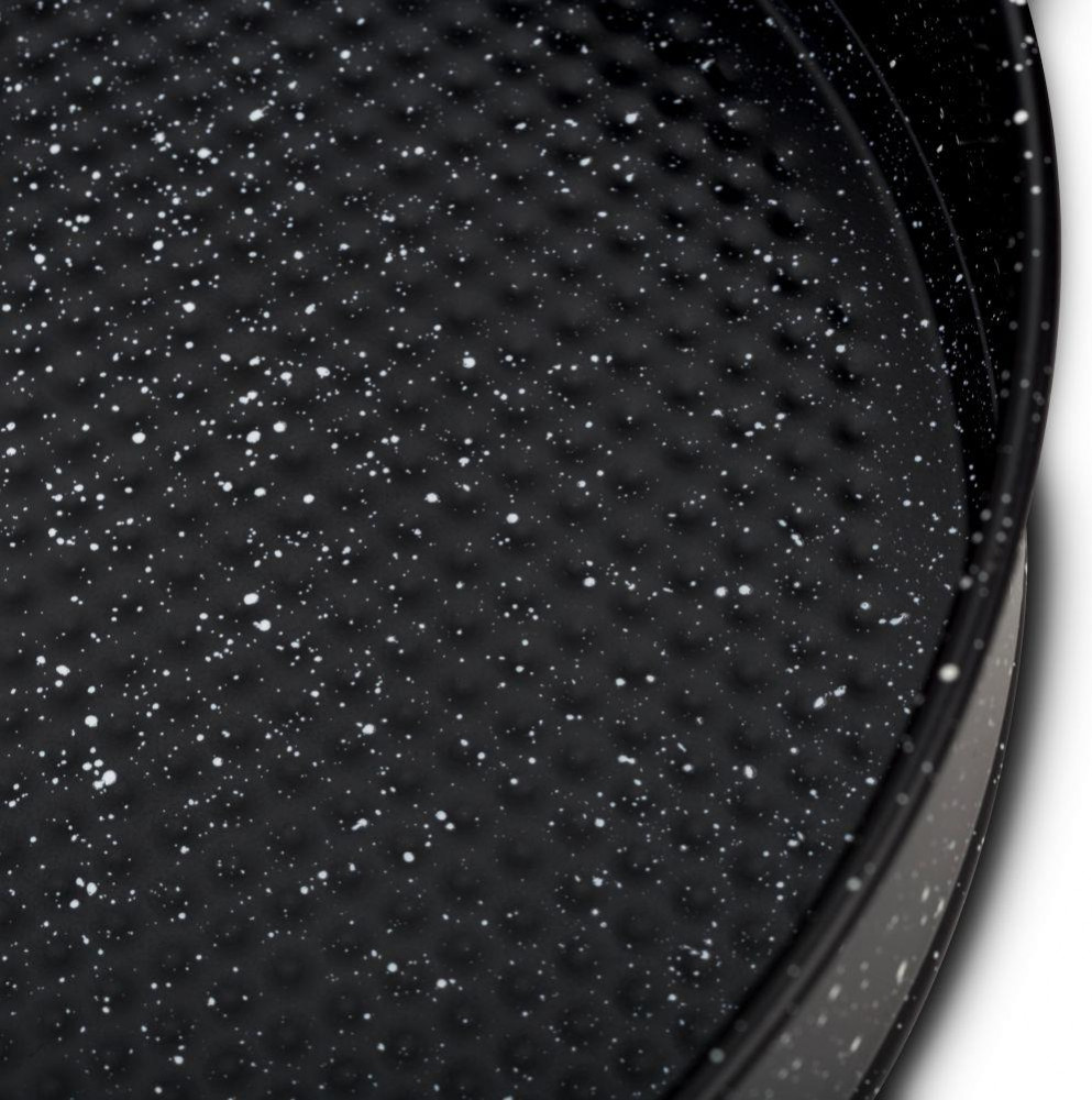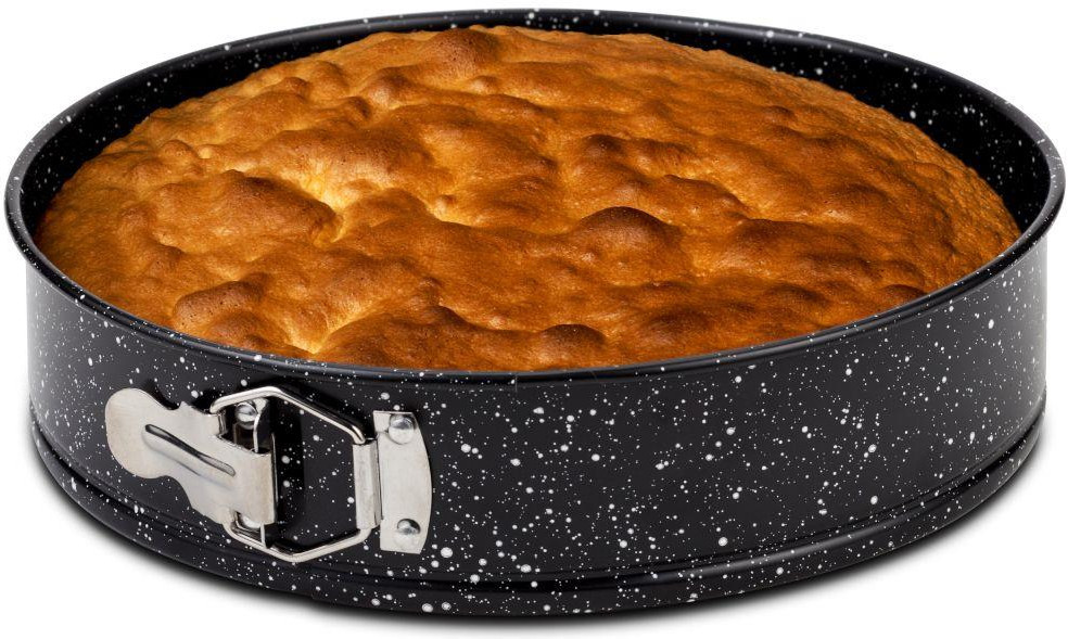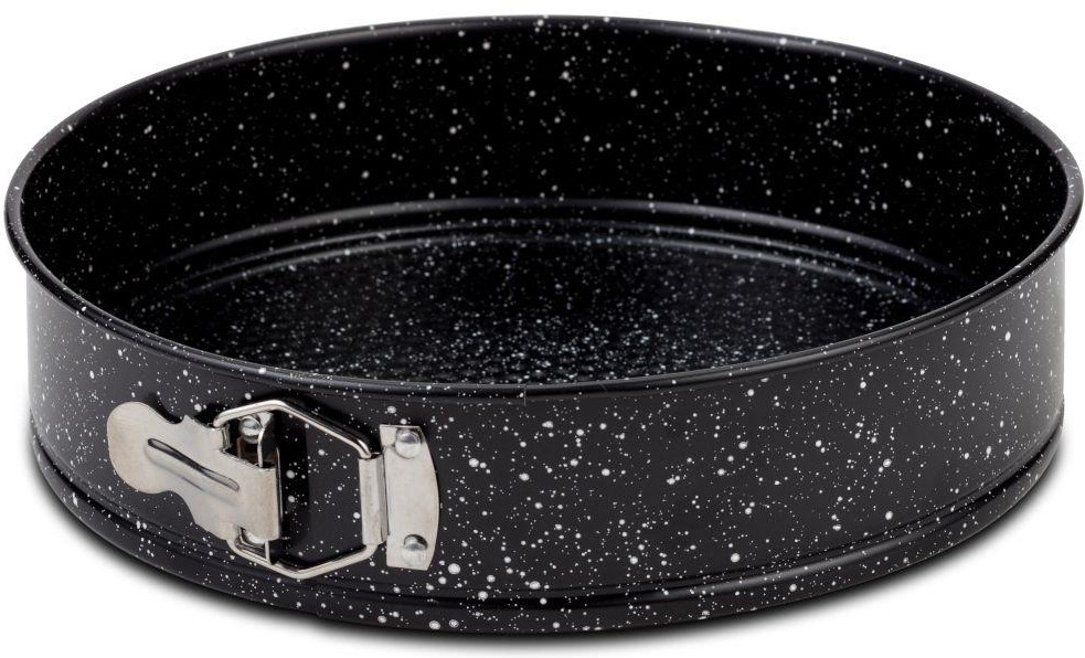 Круглая стальная форма с антипригарным каменным покрытием. Форма изготовлена из стали, что обеспечивает равномерное распределение тепла в посуде для достижения наилучших результатов. Каменное с антипригарным покрытие покрытием в сочетании со съемным механизмом обеспечивает легкое извлечение торта, а также легкую очистку посуды после использования.