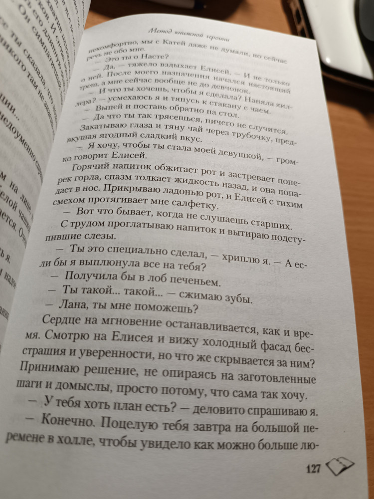 Это моя вторая книга от Алекс Хилл. На первый взгляд кажется , что это типичный школьный любовный роман про девушку и бэд боя. Но автор так играет на этом клише начало такое , что подруга героини решает проверить можно ли с помощью методов книжной героини влюбится в себя парня. Наша героиня Лана соглашается на это в книге очень много юмора , сарказма , где сами герои шутят насчёт этого , написано легко и с ней хорошо себя чувствуешь. Могу ли я её снова перечитать? Однозначно да! Рекомендую ли? Да если хотите интересный книжный роман играющий на клише 10/10 гигачадов Кати