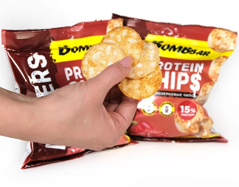 Bombbar Чипсы цельнозерновые протеиновые со вкусом бекона с паприкой «Bombers»