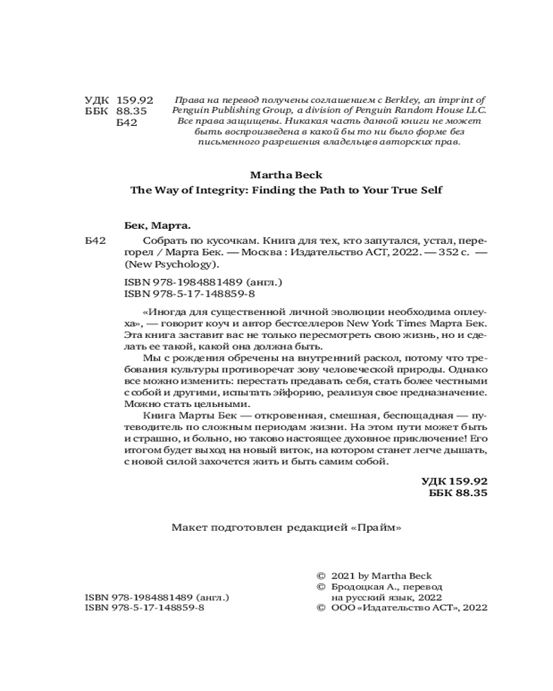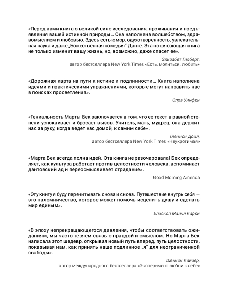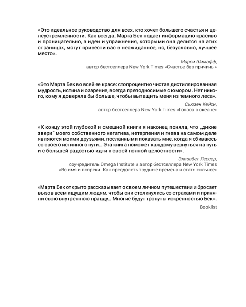 💳 Оплатить за товар можно при получении 🇰🇿 Есть бесплатная доставка по Казахстану от 1 дня 🎁 Копите бонусы с каждой покупки Серия: New Psychology Марта Бек — один из самых известных коучей США и автор бестселлеров New York Times. Она получила докторскую степень по социологии в Гарварде. В течение 17 лет вела колонку в «O», The Oprah Magazine. Ее писательский талант высоко оценивают Опра Уинфри, Элизабет Гилберт, Джулия Кэмерон. Книги Марты Бек входят в список «50 великих книг по психологии». |