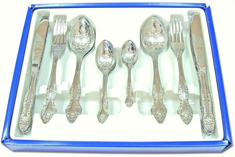 Набор столовых приборов «Павловский завод» изготовлен из высококачественной нержавеющей стали. В набор входят столовые ложки, вилки, ножи и чайные ложки. Приборы имеют элегантные ручки и украшены оригинальным узором. Качественная полировка и изящество форм предметов набора притягивают взгляд. Эксклюзивный дизайн, эстетичность и функциональность набора позволят ему занять достойное место среди кухонного инвентаря, а сервировка праздничного стола таким набором станет великолепным украшением любого торжества.