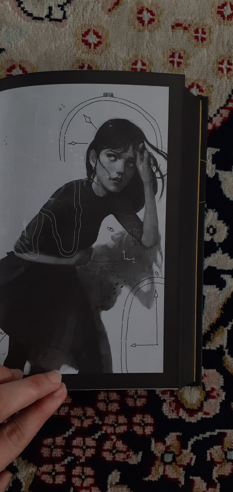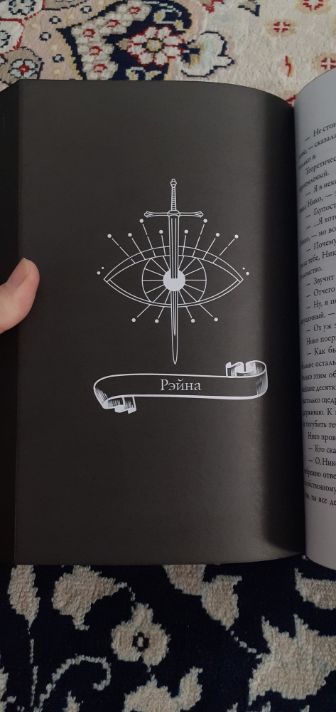 Книга была упакована в плёнку, оформление очень красивое, страницы внутри белые с чёрной окантовкой, из-за этого книга похожа на гримуар. Внутри было две картонных фирменных закладки. Шрифт крупный, читается легко. Я всем довольна.