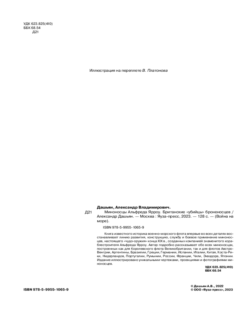 💳 Оплатить за товар можно при получении 🇰🇿 Есть бесплатная доставка по Казахстану от 1 дня 🎁 Копите бонусы с каждой покупки Серия: Война на море «Батум», первый мореходный миноносец российского флота, послуживший опытным образцом для дальнейшего развития этого класса в России, был построен в 1880 г. на верфи знаменитого кораблестроителя Альфреда Ярроу (1842–1932) и вошел в историю как первый в мире миноносец, совершивший самостоятельный дальний морской переход — из Лондона в Черное море. Миноносцы Yarrow & Company, одной из ведущих судостроительных компаний, с момента своего основания и вплоть до окончания Второй мировой войны, вместе с миноносцами фирмы Джона Торникрофта, стояли не только у истоков их зарождения, но и превращения из ненадежного катера, зачастую более опасного для собственного экипажа, чем для противника, в грозный боевой корабль, настоящее «чудо-оружие» конца XIX столетия, представлявшее серьезную угрозу владыке морей того времени — броненосцу. |