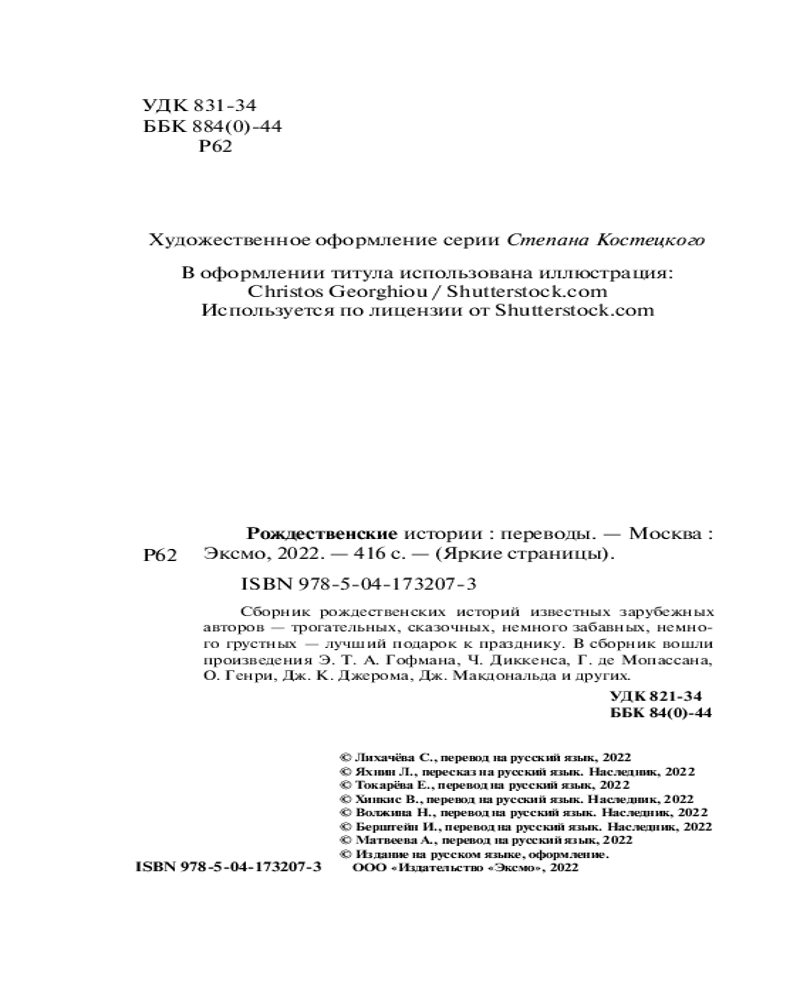 Рождественские историиВ данный момент этот товар отсутствует в продаже. Возможно, у нас найдется аналогичный или похожий товар здесь. Серия: Яркие страницы Сборник рождественских историй известных зарубежных авторов — трогательных, сказочных, немного забавных, немного грустных — лучший подарок к празднику. В сборник вошли произведения Э.Т.А. Гофмана, Ч. Диккенса, Г. де Мопассана, О. Генри, Дж. К. Джерома, Дж. Макдональда и других. Дизайн этого лимитированного издания серии «Яркие страницы» вдохновлен мотивами традиционной европейской открытки. |