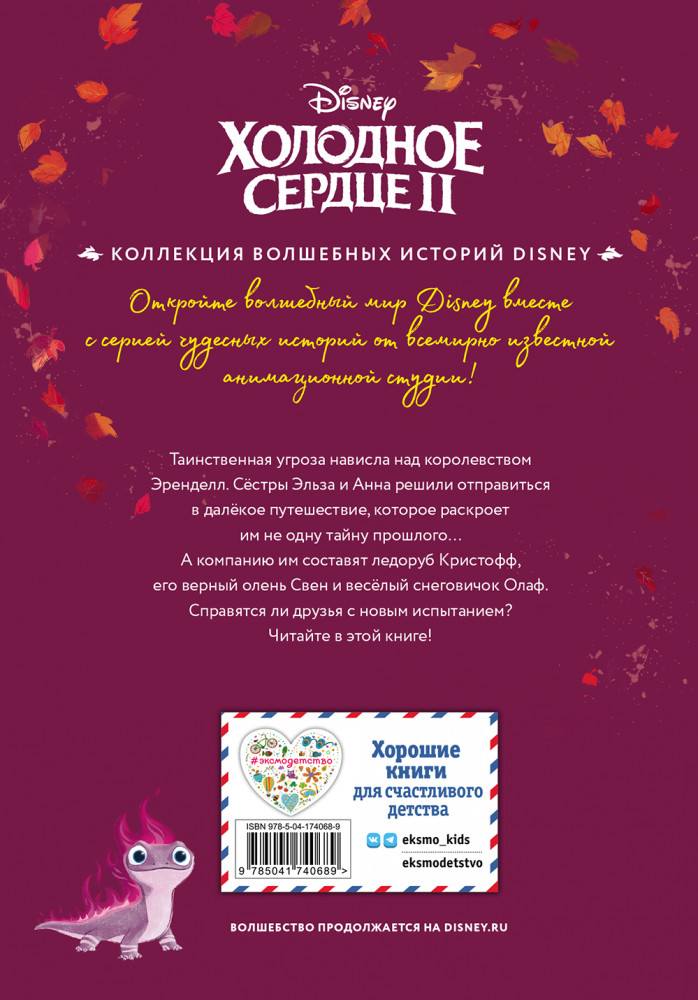 В данный момент этот товар отсутствует в продаже. Возможно, у нас найдется аналогичный или похожий товар здесь. Серия: Disney. Коллекция волшебных историй Анимационный фильм студии Disney «Холодное сердце II», уже успевший стать классикой — это любимая и взрослыми, и детьми история об отважных сёстрах, магии и дружбе. Героям предстоит выяснить немало тайн: что случилось с королём Агнарром и королевой Идуной? Откуда у Эльзы волшебный дар? Что за проклятье лежит на Эренделле?