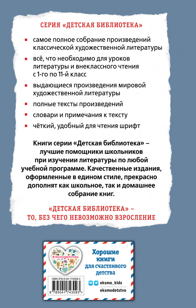 В серии «Детская библиотека» представлены лучшие произведения отечественной и мировой литературы для детей от 5 до 16 лет. Это фольклор и литературные сказки, стихи, рассказы и повести выдающихся писателей-классиков. Все произведения входят в образовательные программы по литературе и рекомендованы Министерством просвещения РФ для изучения в школе и самостоятельного чтения. |