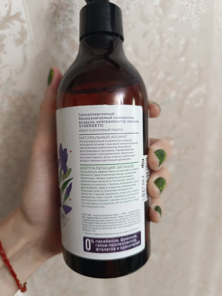 Synergetic Освежитель воздуха гипоаллергенный «Ирис и розовый перец»