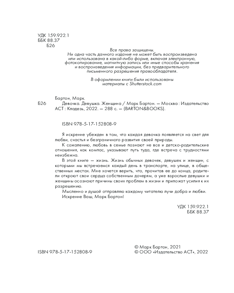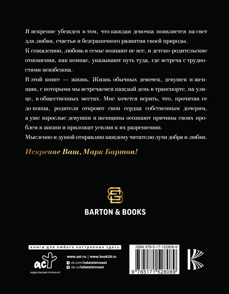 💳 Оплатить за товар можно при получении 🇰🇿 Есть бесплатная доставка по Казахстану от 1 дня 🎁 Копите бонусы с каждой покупки Серия: BARTON&BOOKS Я искренне убежден в том, что каждая девочка появляется на свет для любви, счастья и безграничного развития своей природы. |