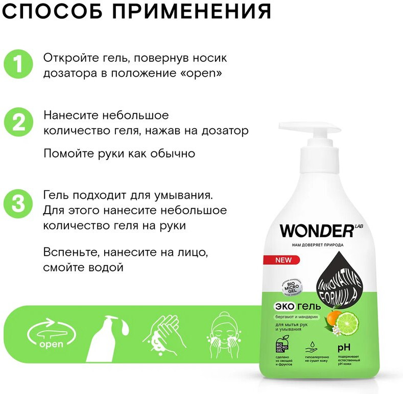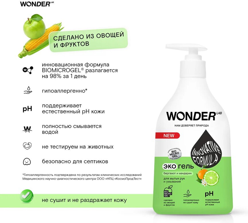 Wonder Lab Мыло жидкое «Бергамот и мандарин»