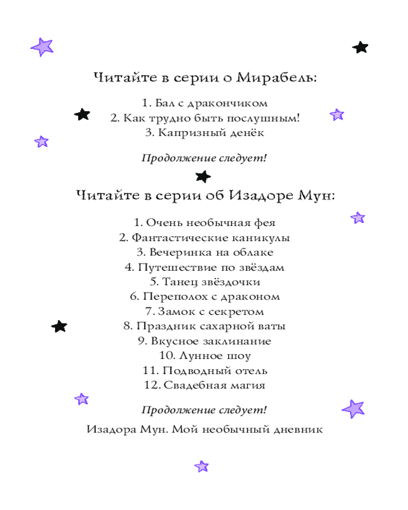 💳 Оплатить за товар можно при получении 🇰🇿 Есть бесплатная доставка по Казахстану от 1 дня 🎁 Копите бонусы с каждой покупки Серия: Детск. Изадора Мун. Приключения очень необычной девочки Семейные каникулы! Мирабель так рада, что они вместе с родителями и братом приехали в классный волшебный отель! Домики на деревьях, аквапарк с горками в виде остроконечных шляп, зефир на костре — как же здорово! А ещё она познакомилась с Беатрикс, девочкой, которая так же любит веселиться, как и сама Мирабель! Впрочем... есть одна проблема: Беатрикс слишком любит проказничать. Ой-ой, неужели Мирабель снова ждут сумасшедшие приключения? |
