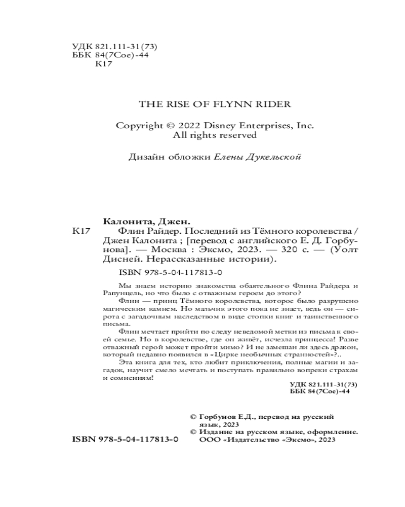 В данный момент этот товар отсутствует в продаже. Возможно, у нас найдется аналогичный или похожий товар здесь. Серия: Детск. Уолт Дисней. Нерасcказанные истории Новинка, единственная в книжном мире, расскажет о том, каким был самый обаятельный персонаж Disney, Флин Райдер из мультфильма «Рапунцель: Запутанная история», до встречи с принцессой. Динамичная история, полная загадок и магических происшествий, держит в приятном напряжении до последней главы.