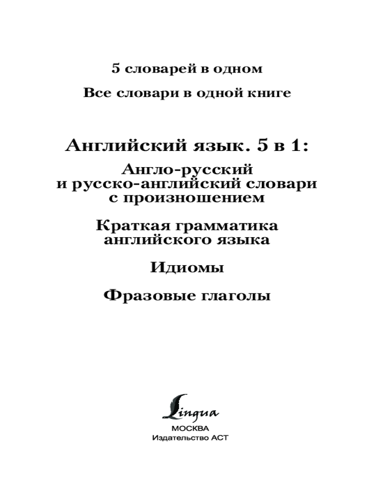 Английский язык. 5 в 1: англо-русский и русско-английский словари с произношением, краткая грамматика английского языка, идиомы, фразовые глаголы+106