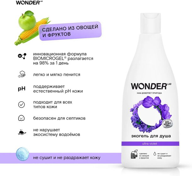 Wonder Lab Экогель для душа «Ultra violet»