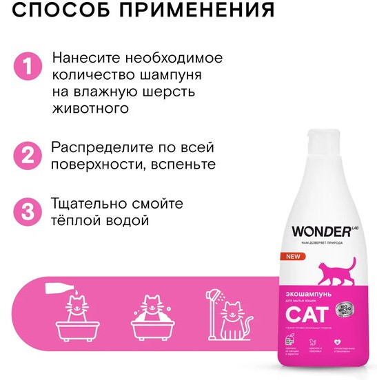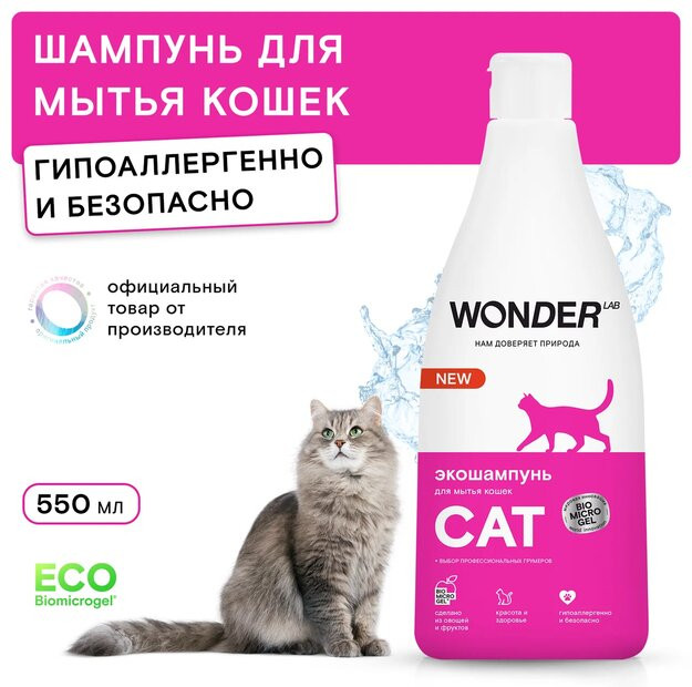 Wonder Lab Экошампунь для мытья кошек-20% +107