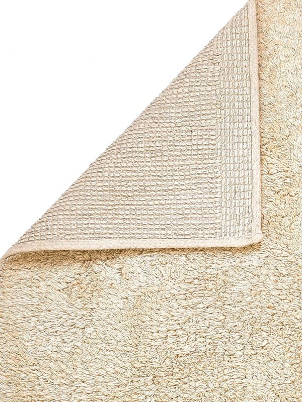 Край коврика окантован тесьмой, не скользит по кафелю за счёт слоя резины на обратной стороне.