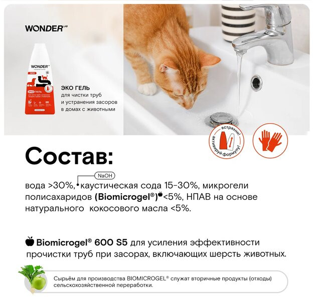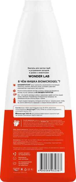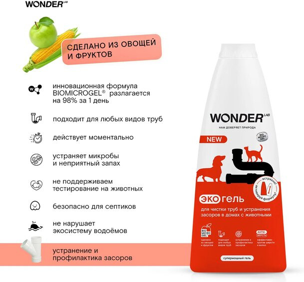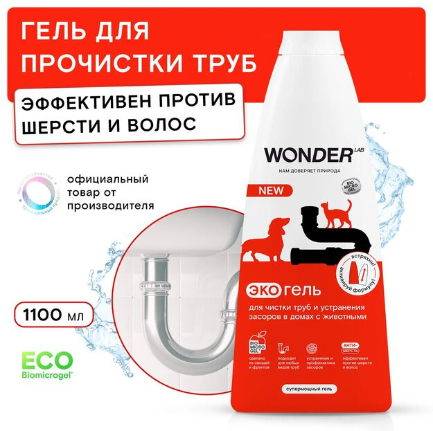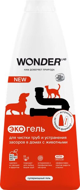 Wonder Lab Экогель для чистки труб и устранения засоров в домах с животными-20%