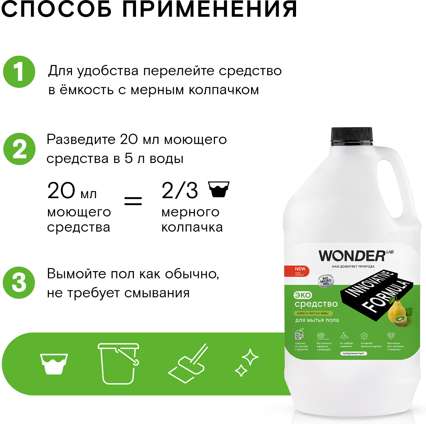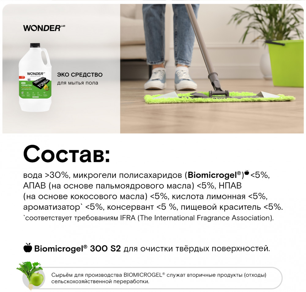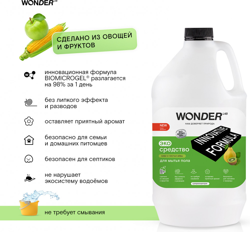 Wonder Lab Экосредство для мытья пола «Киви и листья айвы»