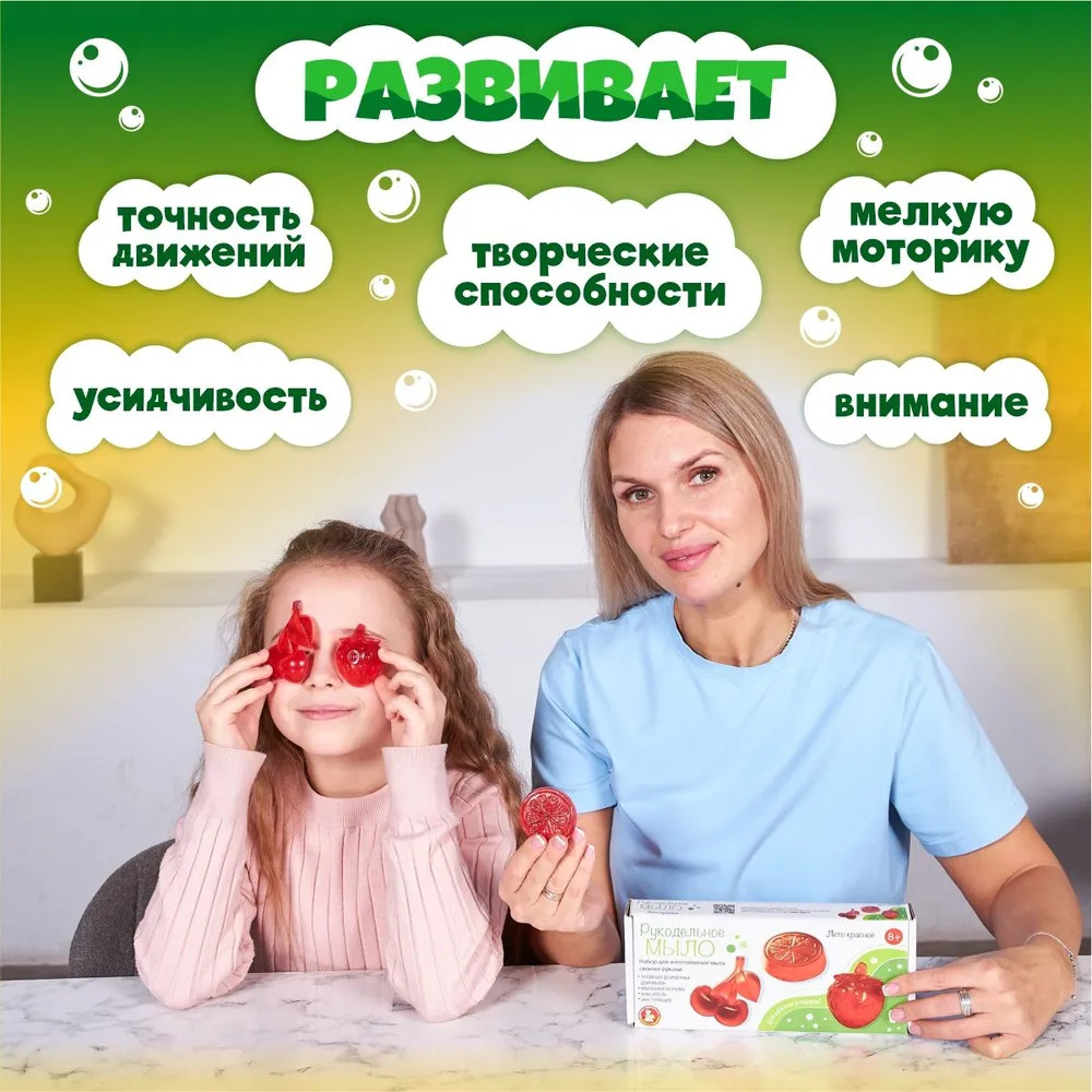 💳 Оплатить за товар можно при получении 🇰🇿 Есть бесплатная доставка по Казахстану от 1 дня 🎁 Копите бонусы с каждой покупки Серия: Рукодельное мыло Набор для изготовления мыла своими руками для детей «Лето красное» входит в серию наборов «Рукодельное мыло». С помощью этого набора для творчества ребенок сможет своими руками создать сразу 3 ярких и красивых кусочка фигурного мыла в виде летних ягод и фруктов, размером не более 8 см по 25 грамм. |