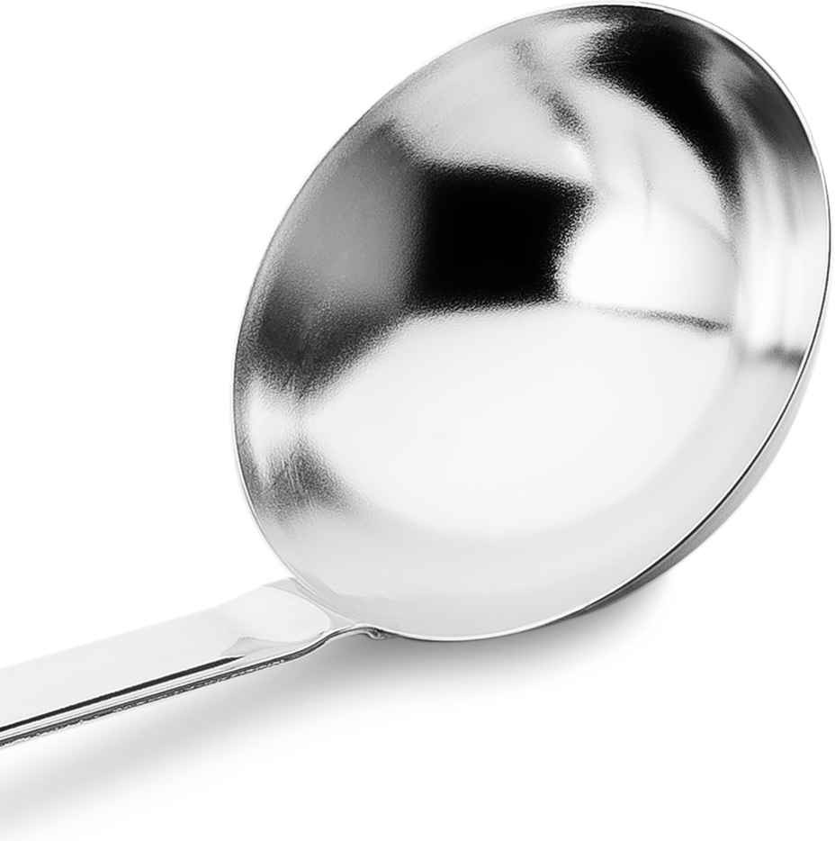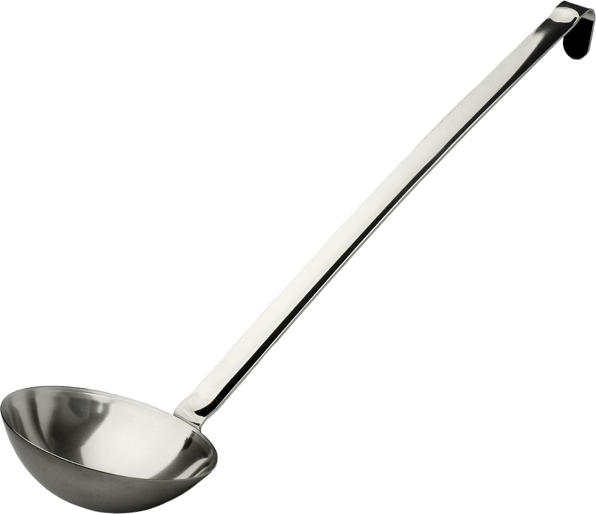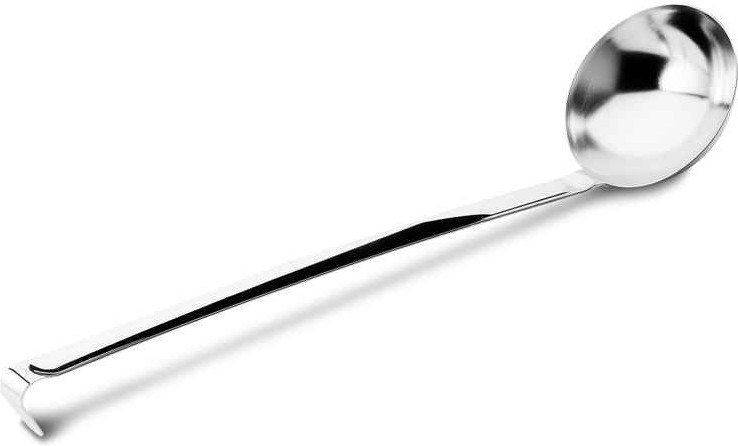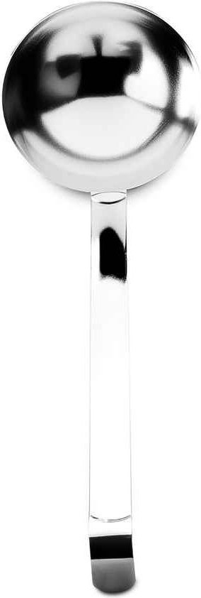 Железный черпак изготовлен полностью из пищевого нержавеющего металла. Стальная поварешка длинная, черпать из глубокой кастрюли, супницы очень удобно. Данный разливательный аксессуар из металла без носика. Не использовать с посудой, имеющей антипригарное покрытие.