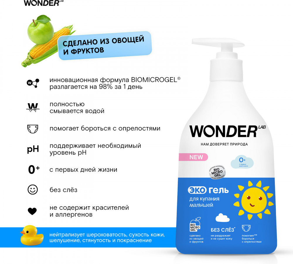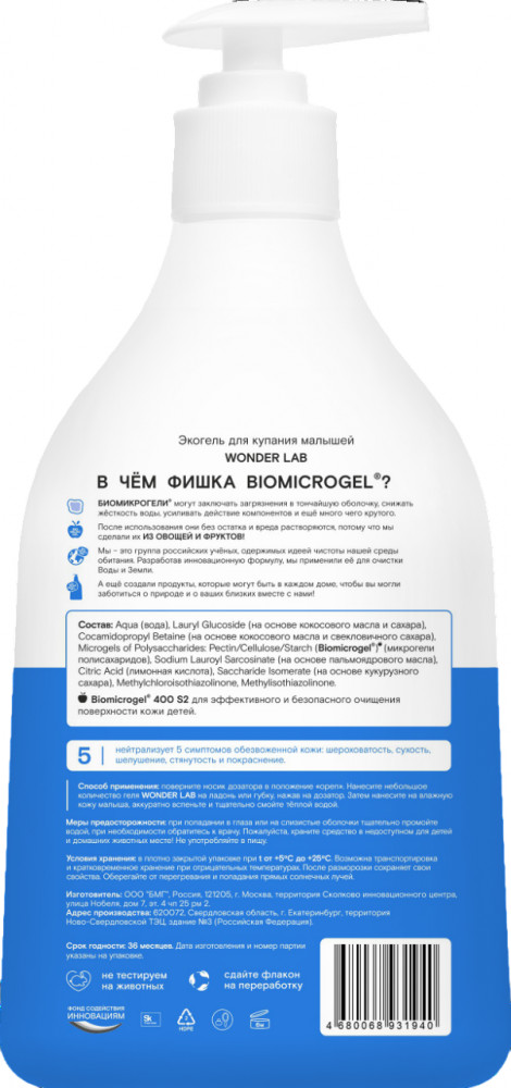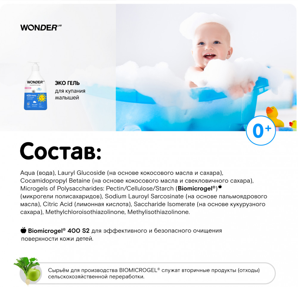 Безопасное средство для купания малышей с рождения. Нежный гель подойдет для ежедневного купания детей с первых дней жизни. Средство не вызывает слез, не щиплет и не раздражает слизистую глаз. Гель для мытья младенцев полностью безопасен, в его составе нет SLES, SLS, парабенов, силиконов, минеральных масел и отдушек. Мягкая формула безопасно очищает детскую кожу без сухости и раздражения, поддерживая естественный pH баланс. Помогает бороться с опрелостями (нейтрализует шероховатость, сухость кожи, шелушение, стянутость и покраснение). |