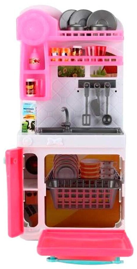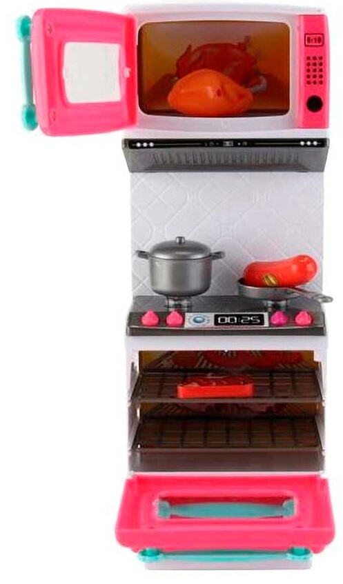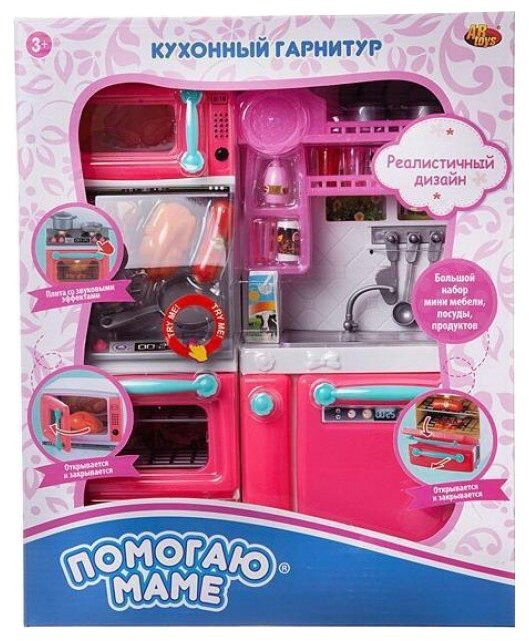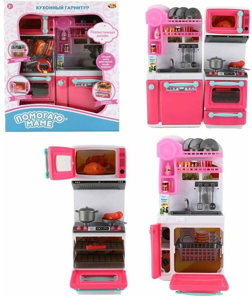 💳 Оплатить за товар можно при получении 🇰🇿 Есть бесплатная доставка по Казахстану от 1 дня 🎁 Копите бонусы с каждой покупки Серия: Помогаю маме Кухонный гарнитур из серии «Помогаю маме» станет идеальным подарком для девочки. Он выполнен в красивых оттенках розового цвета, представляет собой прекрасно детализированный игровой набор, состоящий из мойки, духового шкафа, микроволновой печи, посудомоечной машины, множества кухонных принадлежностей и продуктов. При нажатии на одну из конфорок включаются звуковые и световые эффекты (звук приготовления и сигнал готовности, подсветка в духовке). Игра с набором поможет девочке подготовиться к взрослой жизни, научит правилам использования бытовых приборов, поспособствует развитию аккуратности, хозяйственности и мелкой пальчиковой моторики. Набор отлично подойдет для сюжетно-ролевых игр с куклами высотой до 30 см. |