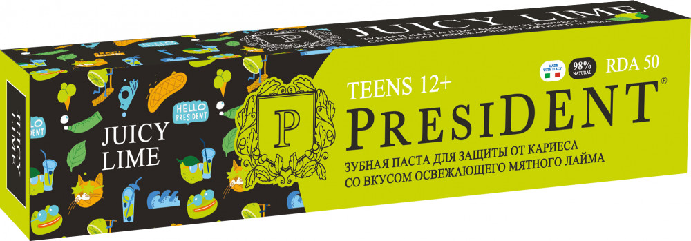 President Зубная паста детская «Juicy Lime»+73 фтор ксилитол SLS отсутствует состав плохо пенится