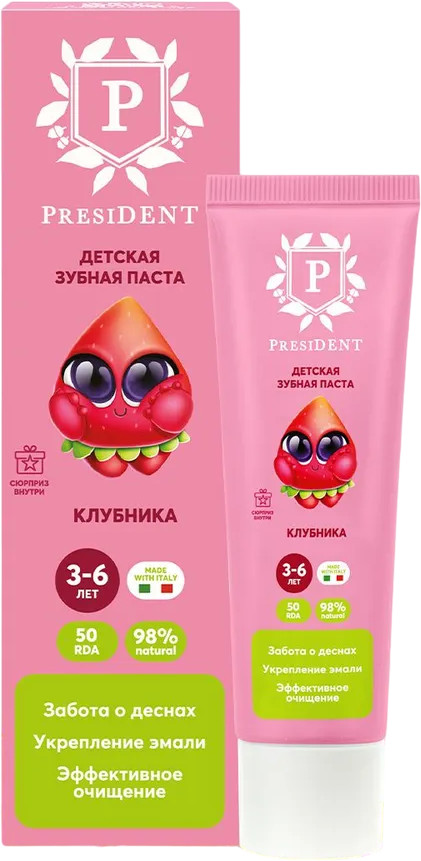 President Зубная паста детская со вкусом клубникиВ данный момент этот товар отсутствует в продаже. Возможно, у нас найдется аналогичный или похожий товар здесь. Детская зубная паста President со вкусом клубники от 3 до 6 лет на 98% состоит из натуральных компонентов и обеспечивает длительный и эффективный уход за молочными и постоянными зубами, предотвращает разрушение эмали, заботится о здоровье нежных десен. Зубная паста содержит биодоступный кальций, который способствует интенсивной реминерализации, укрепляет эмаль молочных и постоянных зубов. Календула снижает риск воспаления. Высокая концентрация ксилитола 10% подавляет рост бактерий и сокращает образование зубного налета. Гелевая форма зубной пасты облегчает очищение в труднодоступных местах. |