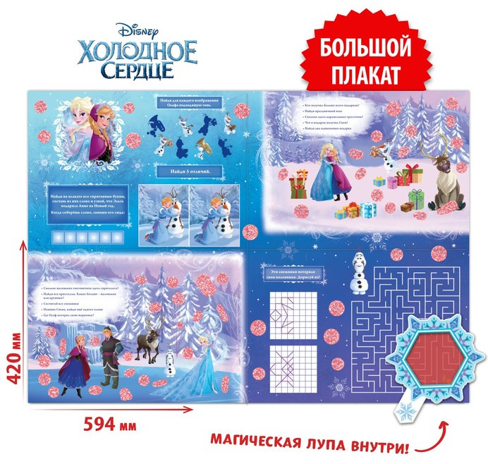Disney Плакат с секретами «Волшебный плакат»В данный момент этот товар отсутствует в продаже. Возможно, у нас найдется аналогичный или похожий товар здесь. Серия: Новогодние книги Буква-Ленд Волшебный плакат с секретами — это удивительное приключение с героями мультфильма «Холодное сердце»! В комплект входит красная лупа — она поможет раскрыть все секреты, которые ждут вас внутри. Просто наведите её на красные участки и узнайте, что там скрывается. |
